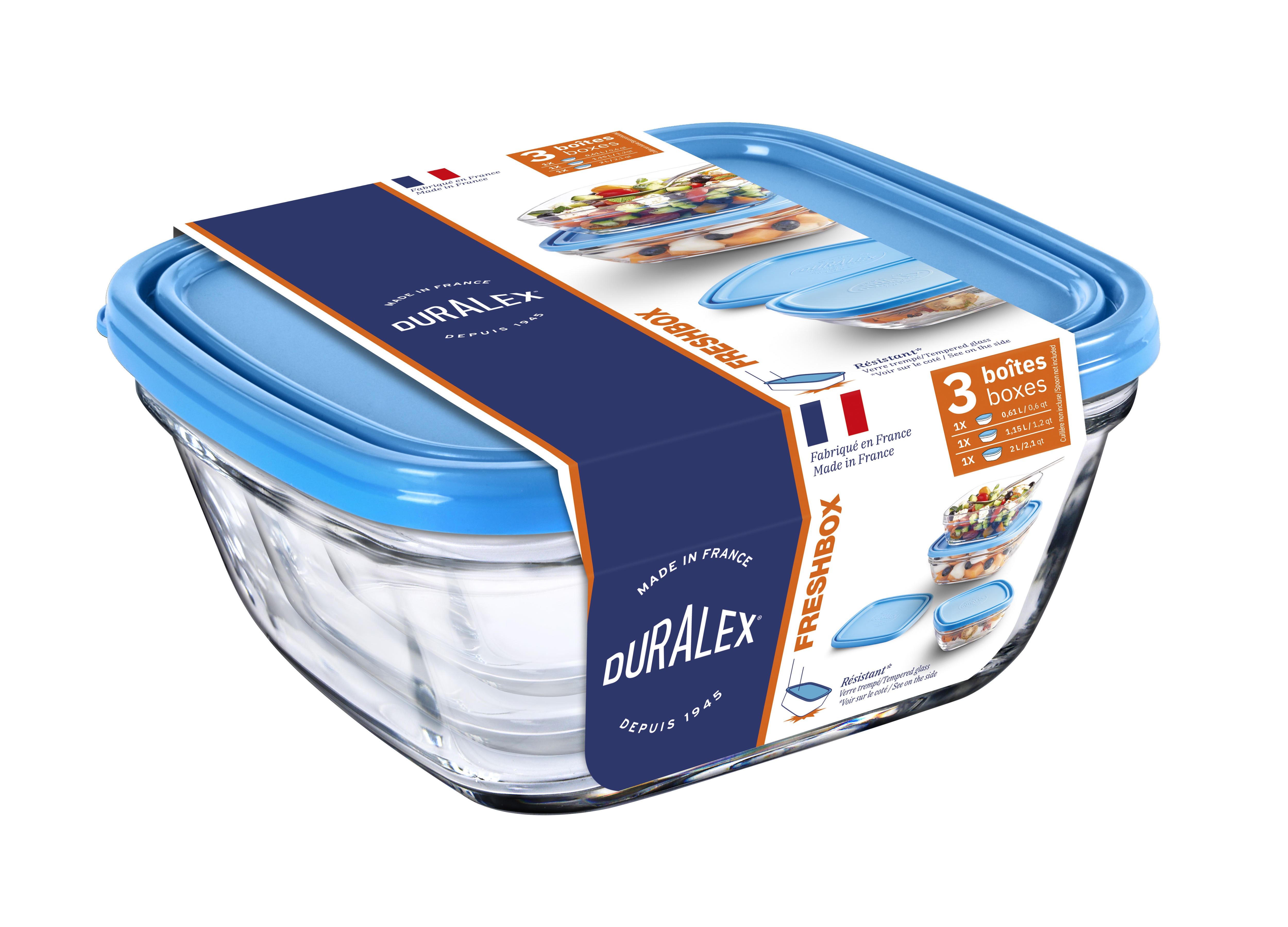 | Libellé | Service 3 Pièces Freshbox Carré 14, 17, 20Cm Couvercle Bleu |