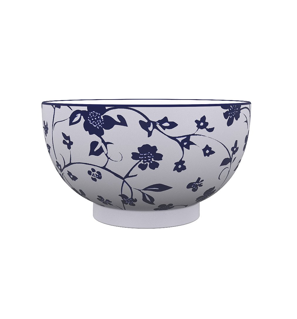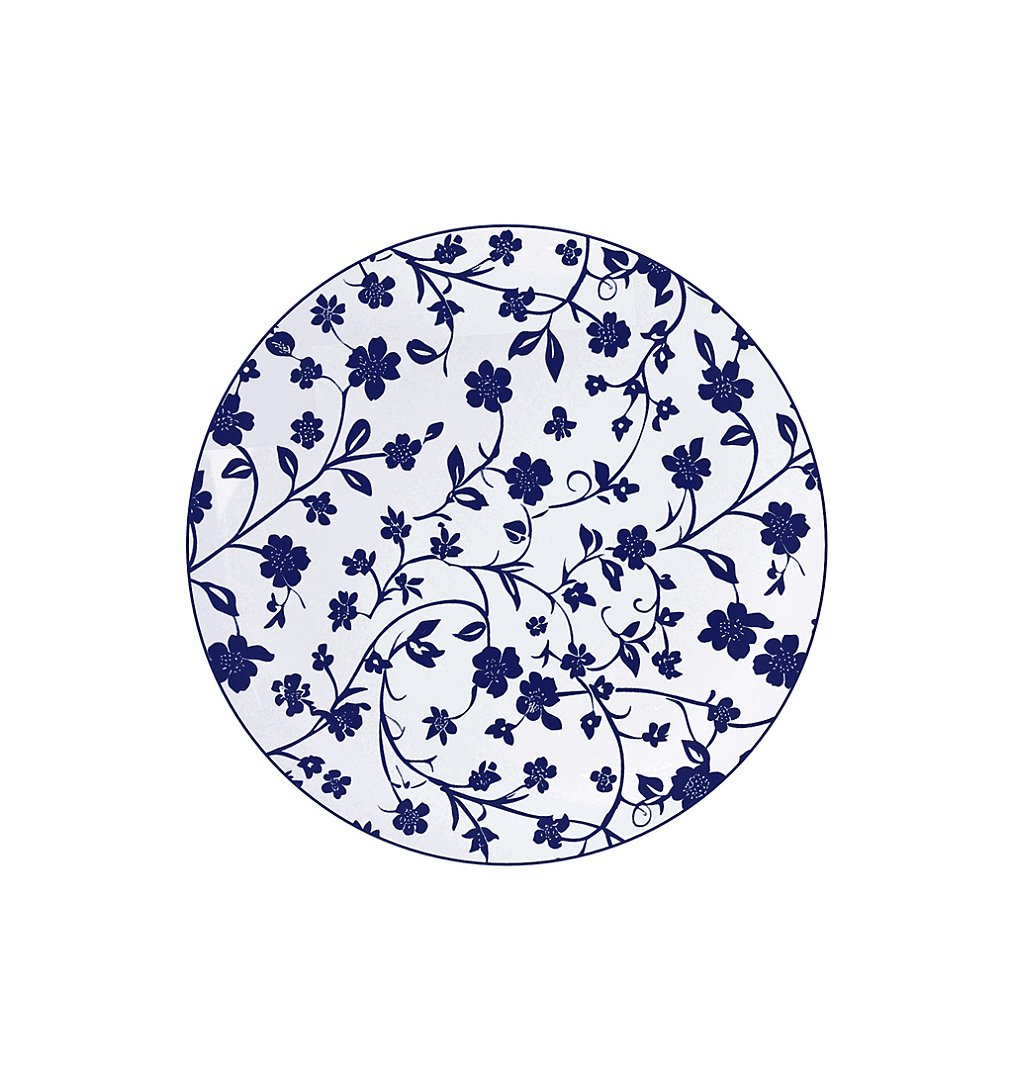 En porcelaine - 6 assiettes plates 27cm, 6 assiettes à dessert 19cm, 6 coupelles 11,5cm - Décor floral
