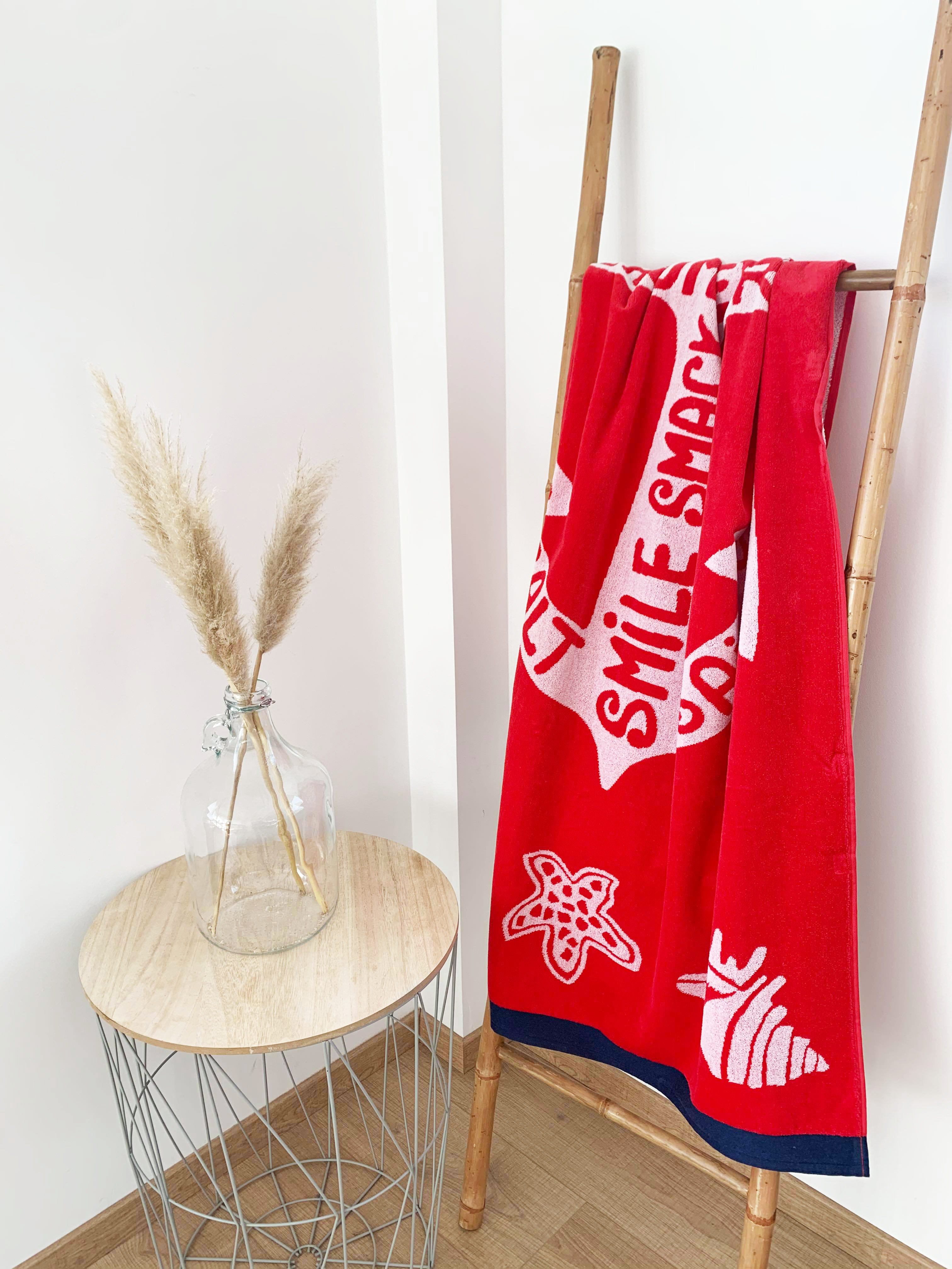 Cette serviette de plage en éponge velours Jacquard est l'accessoire indispensable pour toutes vos sorties à la piscine, à la plage et trouvera même sa place dans votre sac de sport. Douillette, confortable et ultra absorbante, cette serviette a été conçue avec des cotons de qualité, offrant ainsi un super confort sur le sable, sur une chaise longue, sur une terrasse ou au bord de l'eau. Le recto est en éponge velours et le verso en éponge bouclette 100% coton. La dimension 90x x 170cm est idéale pour un adulte et également pour les enfants ou ados.