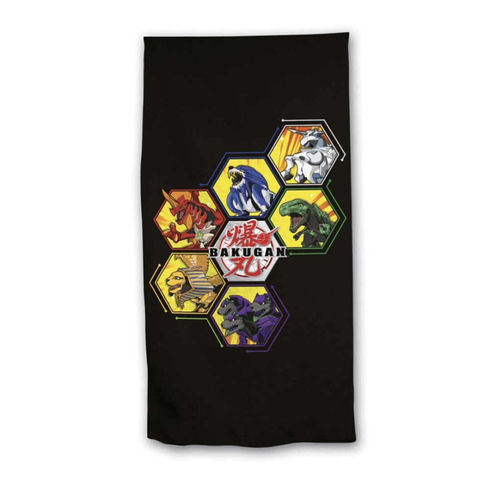 Le design représente le personnage emblématique de ce manga qu'est Bakugan. On retrouve au premier plan, en plein centre de la serviette, le logo blanc et rouge de Bakugan, ainsi que l'ensemble des personnages du manga tout autour du logo, placé au centre. Le tout sur un fond noir. Cet article est fait à 100% de coton et peut être lavé en machine et séché au sèche-linge à froid.