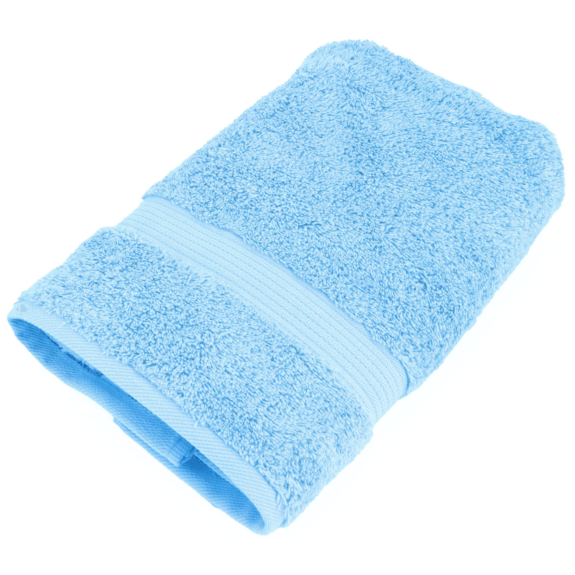 | Plus produit | Serviette de toilette 50x100cm LUXOR bleu pâle 100% coton peigné 600 g/m2 disposant de deux faces bouclette éponge |