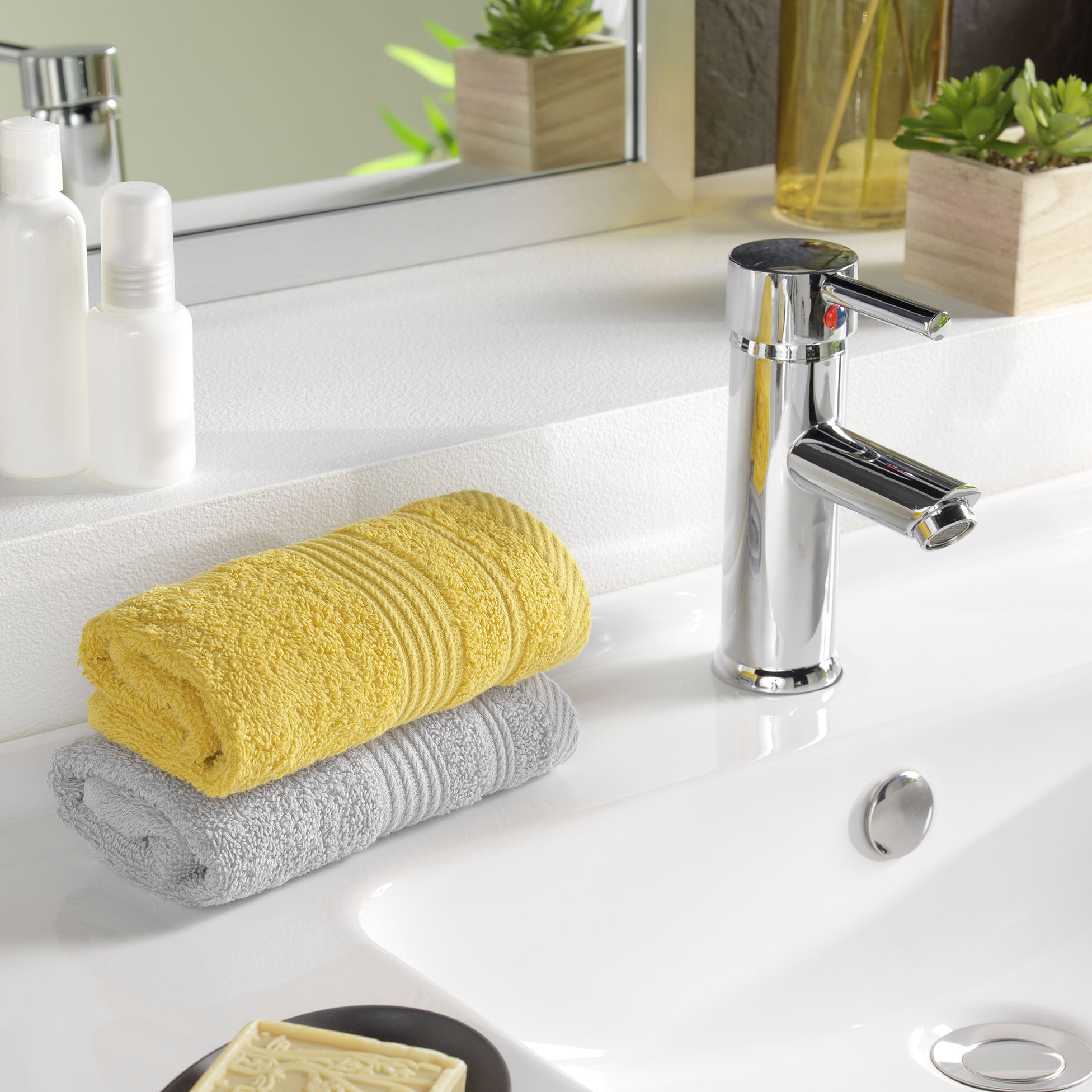 Pour accessoiriser votre salle de bain pensez au Gants de toilette, Tapis de douche, rideau de douche, distributeur de savon et de nombreux autres articles dans cette collection.
