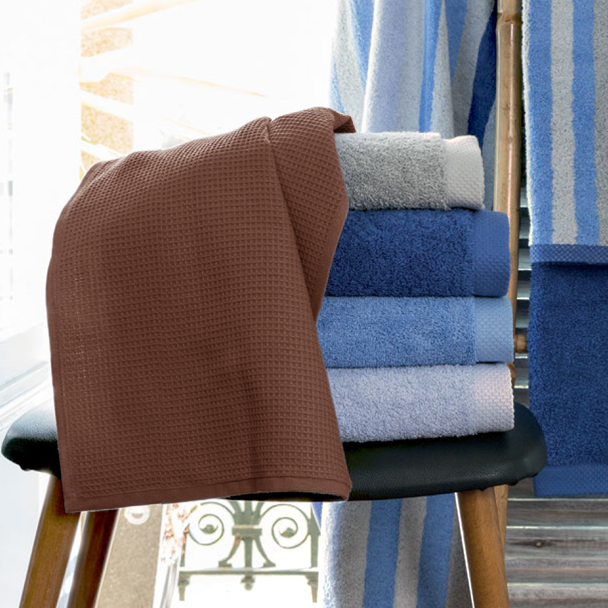 | Plus produit | Serviette de toilette 50x100 cm nid d'abeille, éponge 100% coton cardé 300 g/m² - PURE WAFFLE marron - Fabriqué au Portugal |