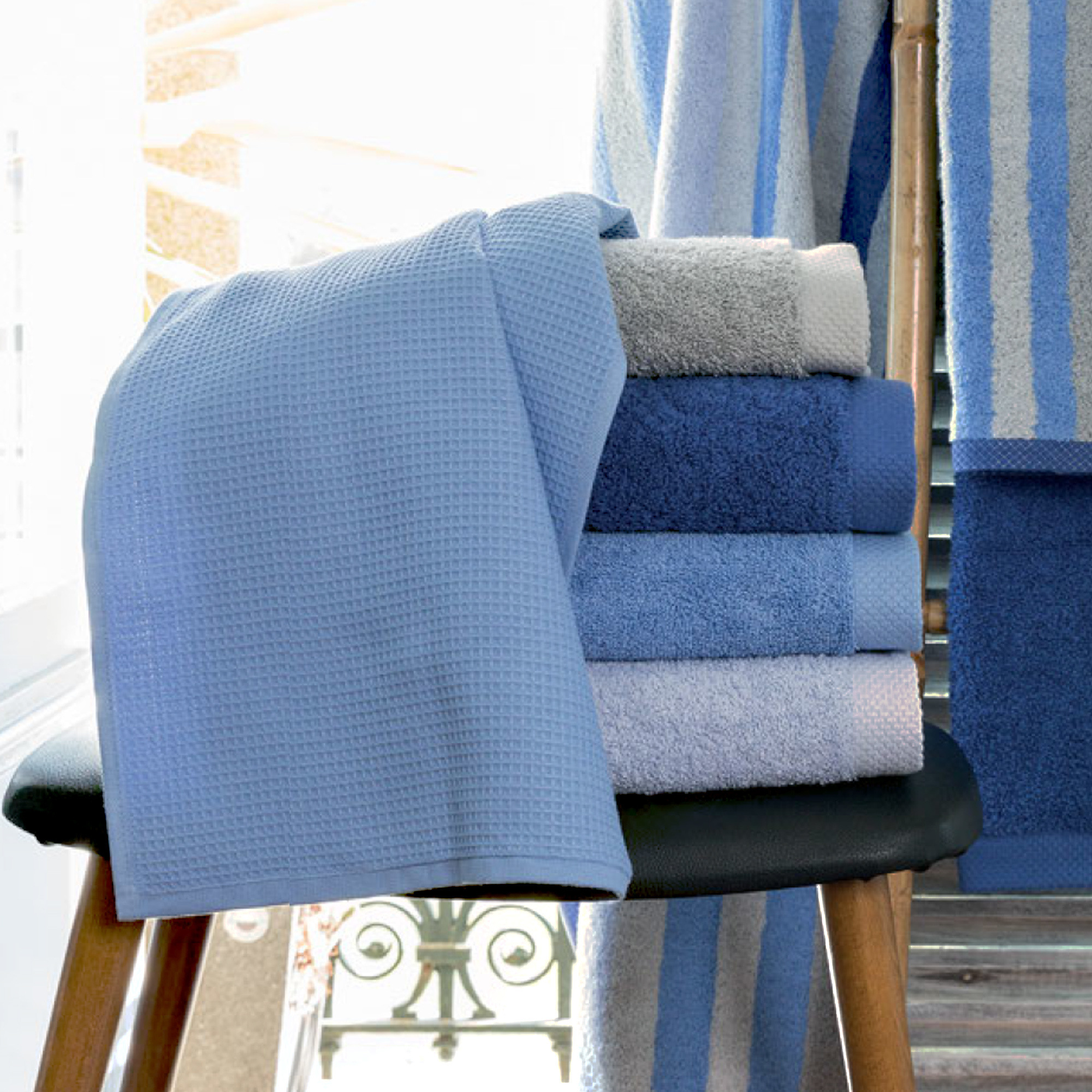 | Plus produit | Serviette de toilette 50x100 cm nid d'abeille, éponge 100% coton cardé 300 g/m² - PURE WAFFLE bleu mer - Fabriqué au Portugal |