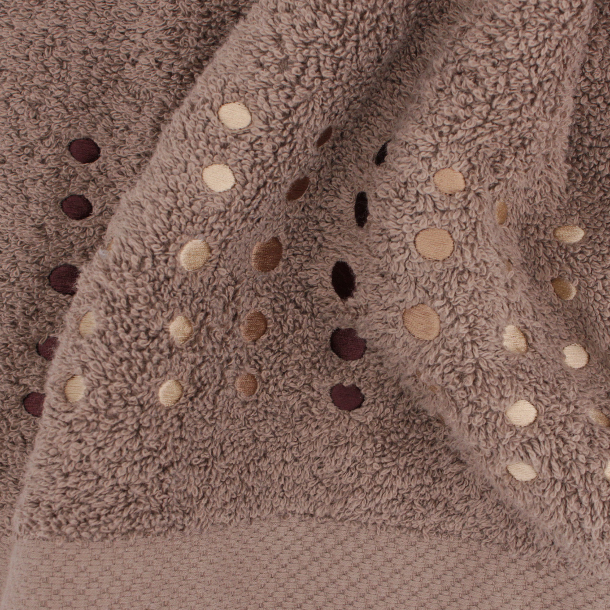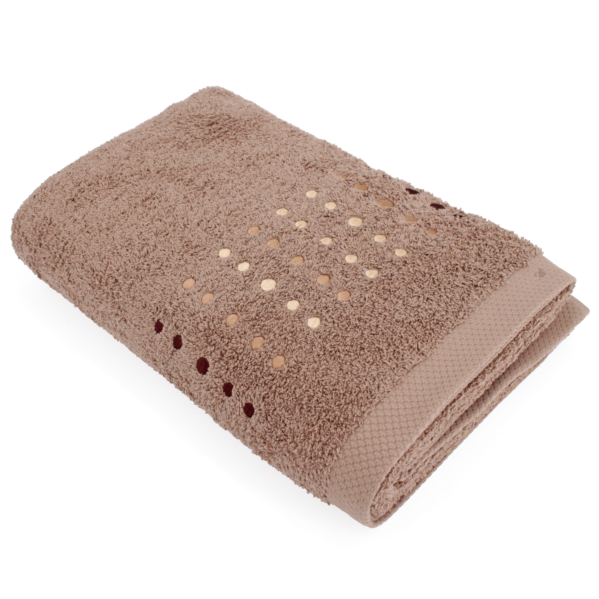 | Plus produit | Serviette de toilette 50x100 cm PURE POINTS, éponge 100% coton 550 g/m2, broderies - Marron Taupe - Fabriqué au Portugal |