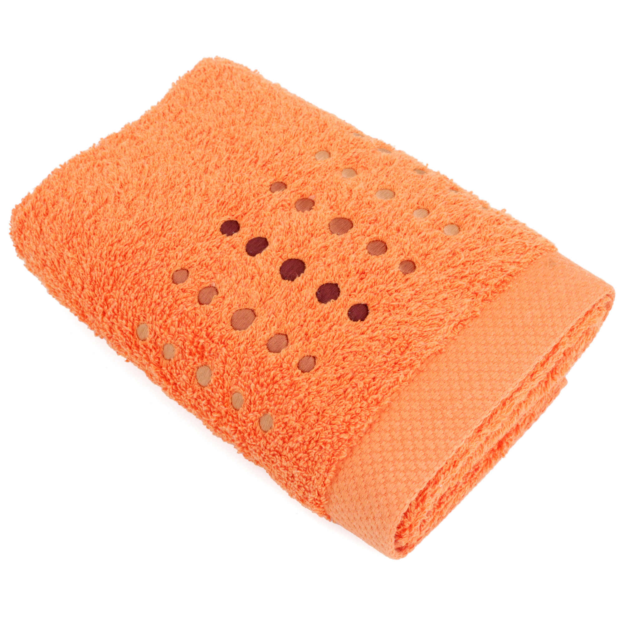 SERVIETTE DE TOILETTE 50x100 cm, 100 % COTON 550 g/m2 - PURE POINTS ORANGE BUTANE