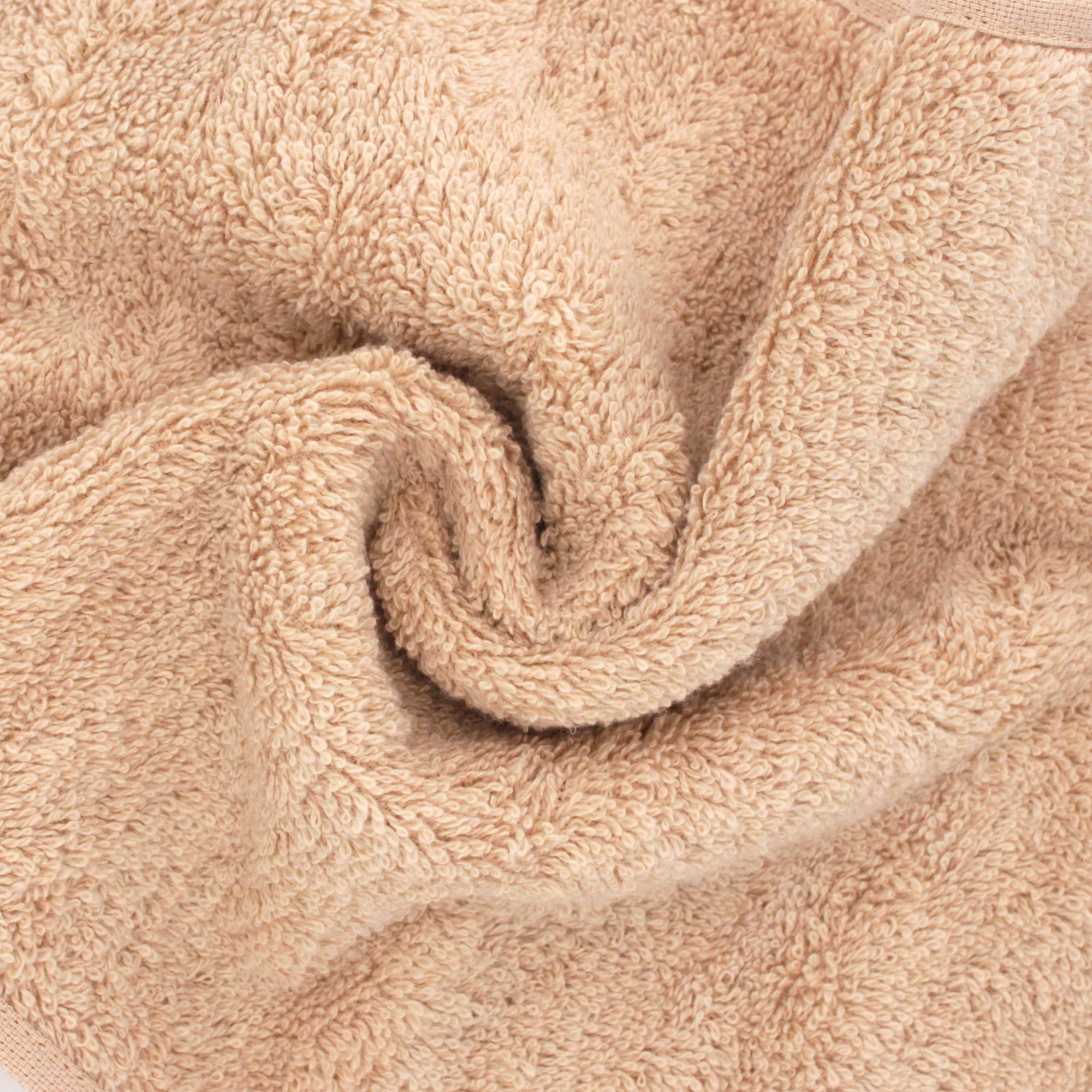 | Plus produit | Serviette invité Pure 33x50 cm 100% coton cardé - confort d'utilisation avec bouclette éponge double face, coloris vif et tonique, Beige 550 g/m2 - Fabriqué au Portugal |
