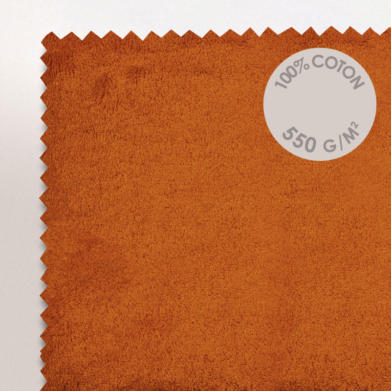 | Plus produit | Serviette invité Pure 33x50 cm 100% coton cardé - confort d'utilisation avec bouclette éponge double face, coloris vif et tonique, Orange Safran 550 g/m2 - Fabriqué au Portugal |