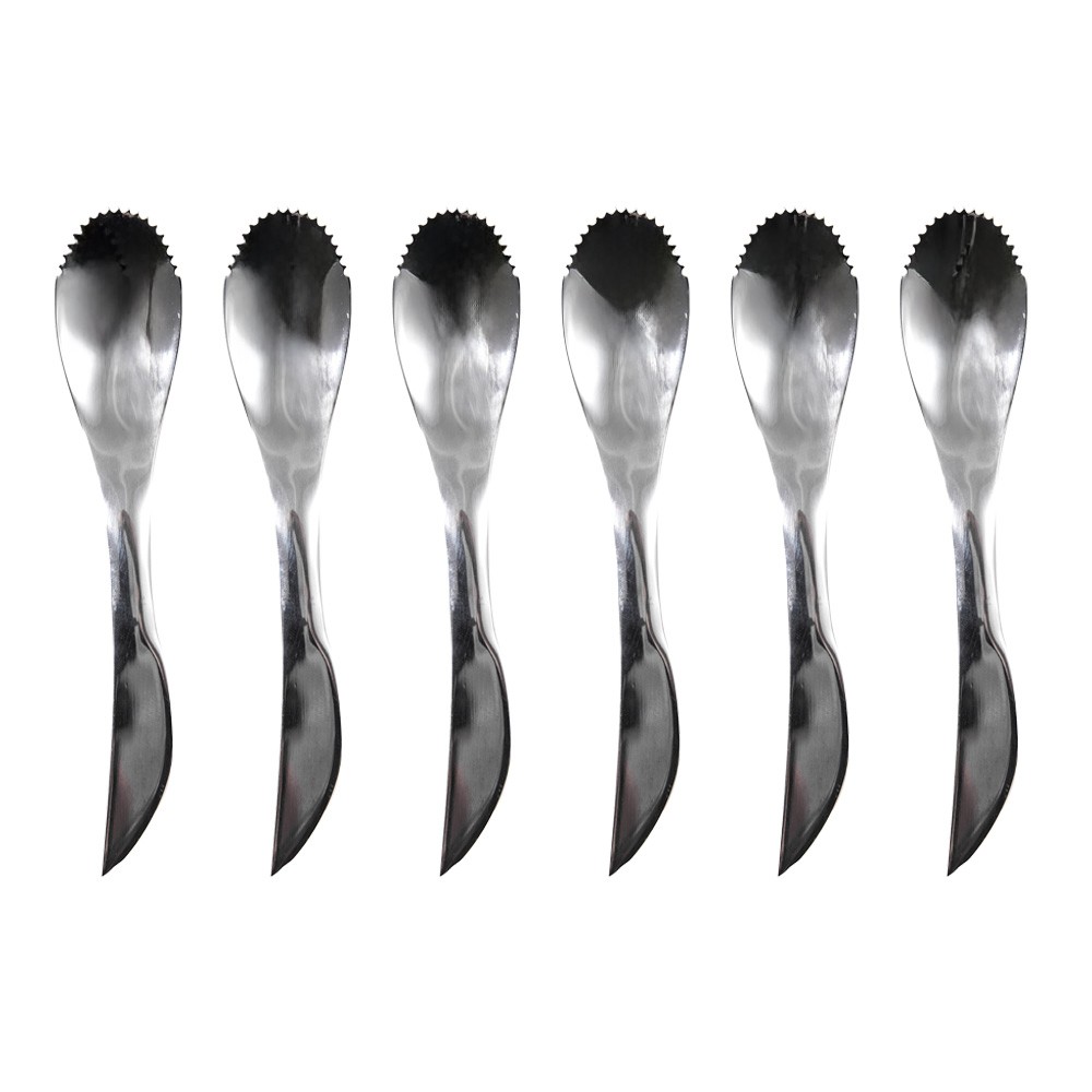 Découvrez notre lot de 6 cuillères en inox, l'outil parfait pour éplucher et déguster kiwis et pamplemousses avec facilité et style.