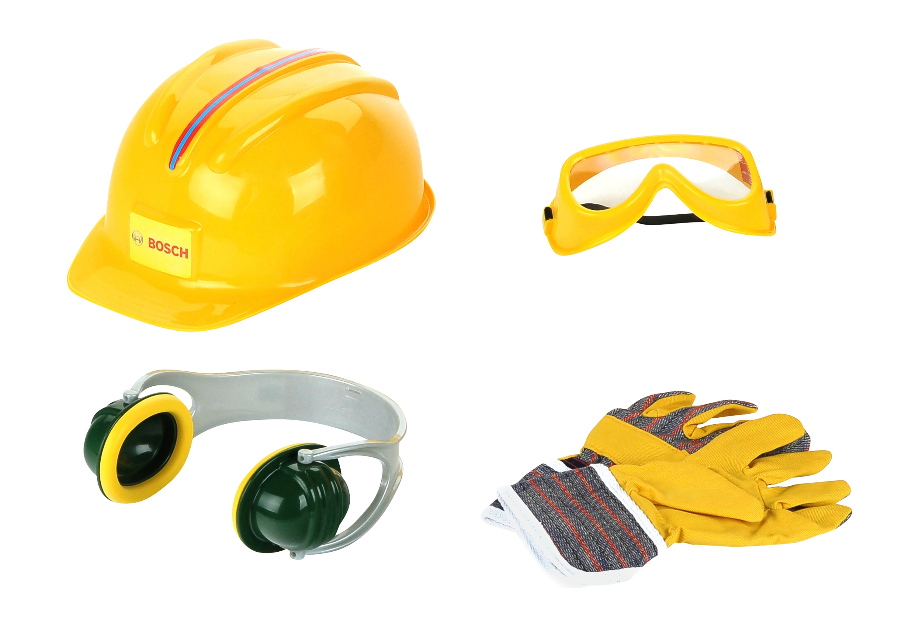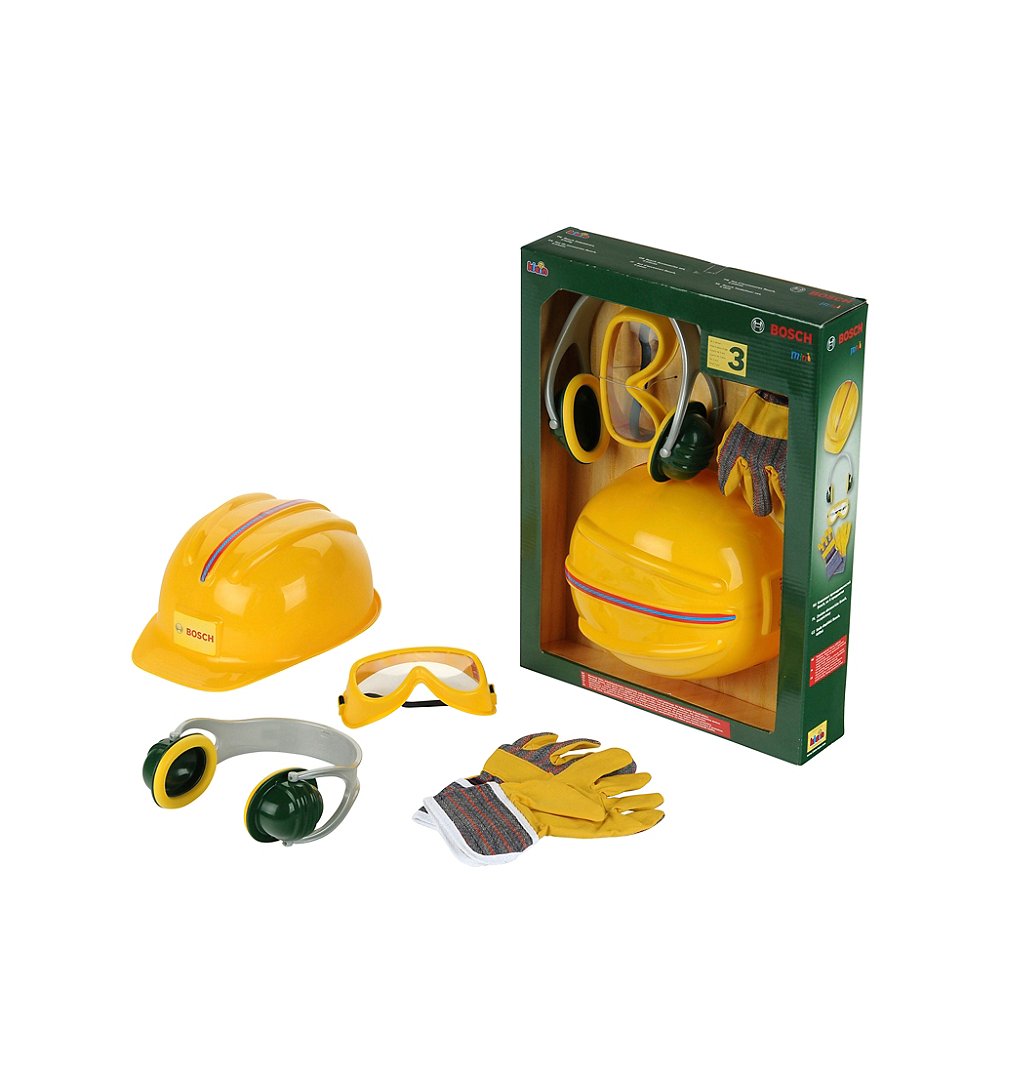 Set de bricolage. Contenu : casque, lunettes de sécurité, protège-oreilles, paire de gants.