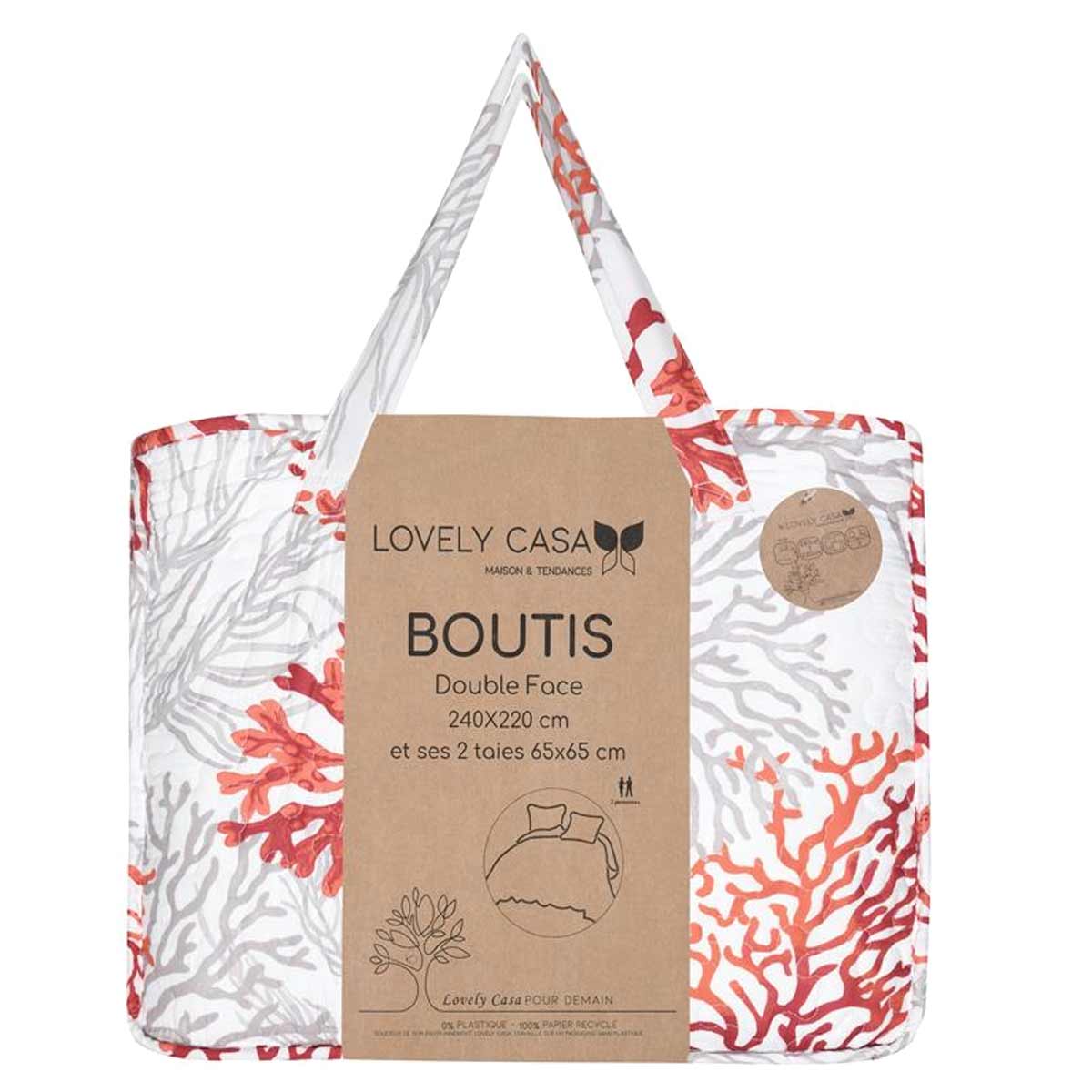 Set couvre lit boutis Corail et 2 taies taille 260 x 240 cm