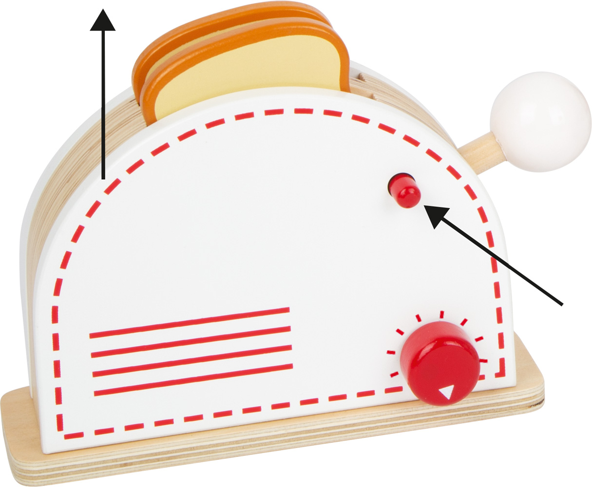 Les appareils en bois stimulent les jeux de rôle actifs et ont des fonctions spéciales qui rendent le jeu particulièrement réaliste. En plus des bruits de cliquetis des boutons, le grille-pain a une fonction pop-up qui fait sauter le toast fini. Le fouet est rotatif et pliable.