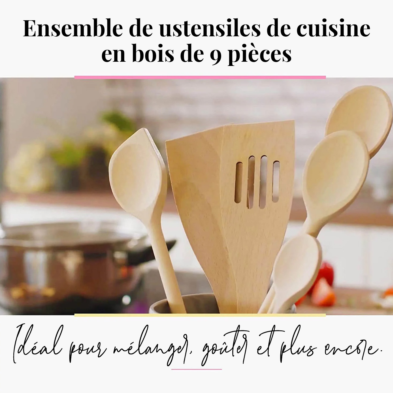 | Libellé | Set d'ustensiles de cuisine en bois 9 pièces |