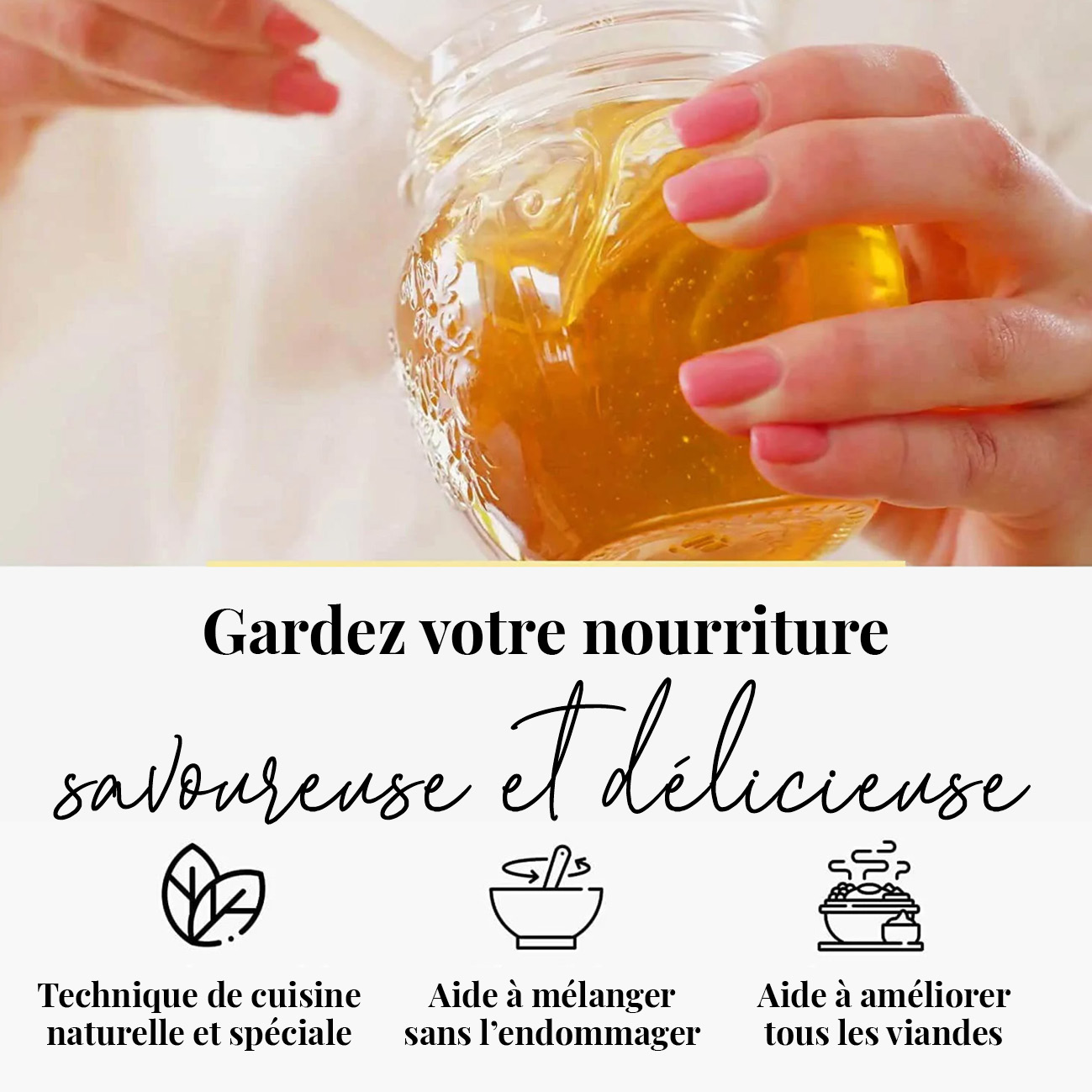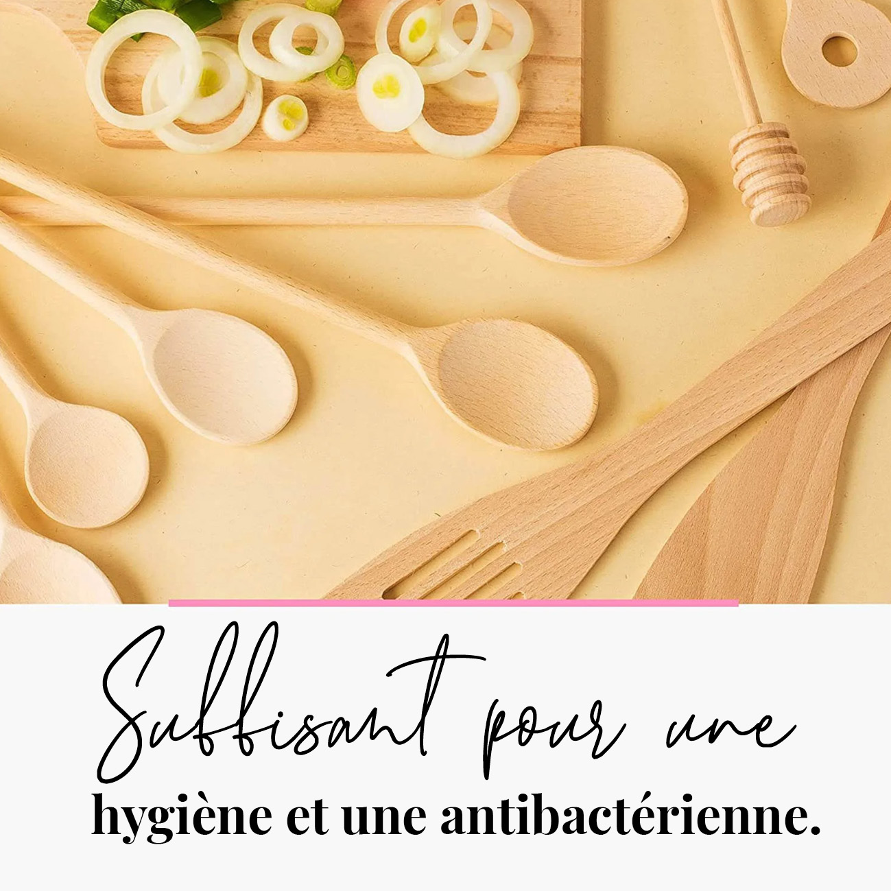 Votre ensemble d'ustensiles de cuisine en bois - Préparez toutes vos recettes préférées avec élégance et confiance! Ce set comprend 6 cuillères en bois de tailles multiples, 2 spatules en bois (à rainures et à retourner) et 1 cuillère à miel. Spécification de l'ensemble d'ustensiles de cuisine en bois 9 pièces (cuillères à cuisine, spatules, cuillère à miel): Contenu de la boîte: l'ensemble se compose de 6 cuillères en bois robustes (longueur: 35 cm, 2 x 30 cm, 25 cm, 20 cm, 18 cm), 2 spatules (longueur: 2 x 30 cm), 1 cuillère à miel. Un ensemble d'ustensiles de cuisine de qualité supérieure: des ustensiles hautement pratiques pour la cuisson, la cuisine, la rôtisserie, la vapeur, le mélange, et bien plus encore. Hygiénique: le bois vient exclusivement du bois de hêtre. Instructions d'Entretien : Il est le plus rapide et le plus facile de nettoyer avec de l'eau, puis essuyer avec un chiffon et laisser sécher. Fabriqué en bois de hêtre durable - Bien fabriqué et efficace, notre ensemble de cuillère à miel, spatules et cuillères de cuisine en bois est solide et durable. La belle artisanat de ces ustensiles de cuisine rend la cuisine et la préparation des aliments facile. Facile à nettoyer - Garder vos ustensiles de cuisine en bois en parfait état est un jeu d'enfant. Il suffit de les laver avec de l'eau. Ensuite, essuyez ces ustensiles en bois avec un chiffon et laissez-les sécher. Accessoires de cuisine en bois incontournables - Toute personne qui aime cuisiner et servir des aliments sera ravie de posséder cet ensemble d'ustensiles en bois de qualité supérieure fabriqué en Europe. Ils sont robustes et faciles à tenir, ce qui en fait un excellent cadeau pour toute occasion.