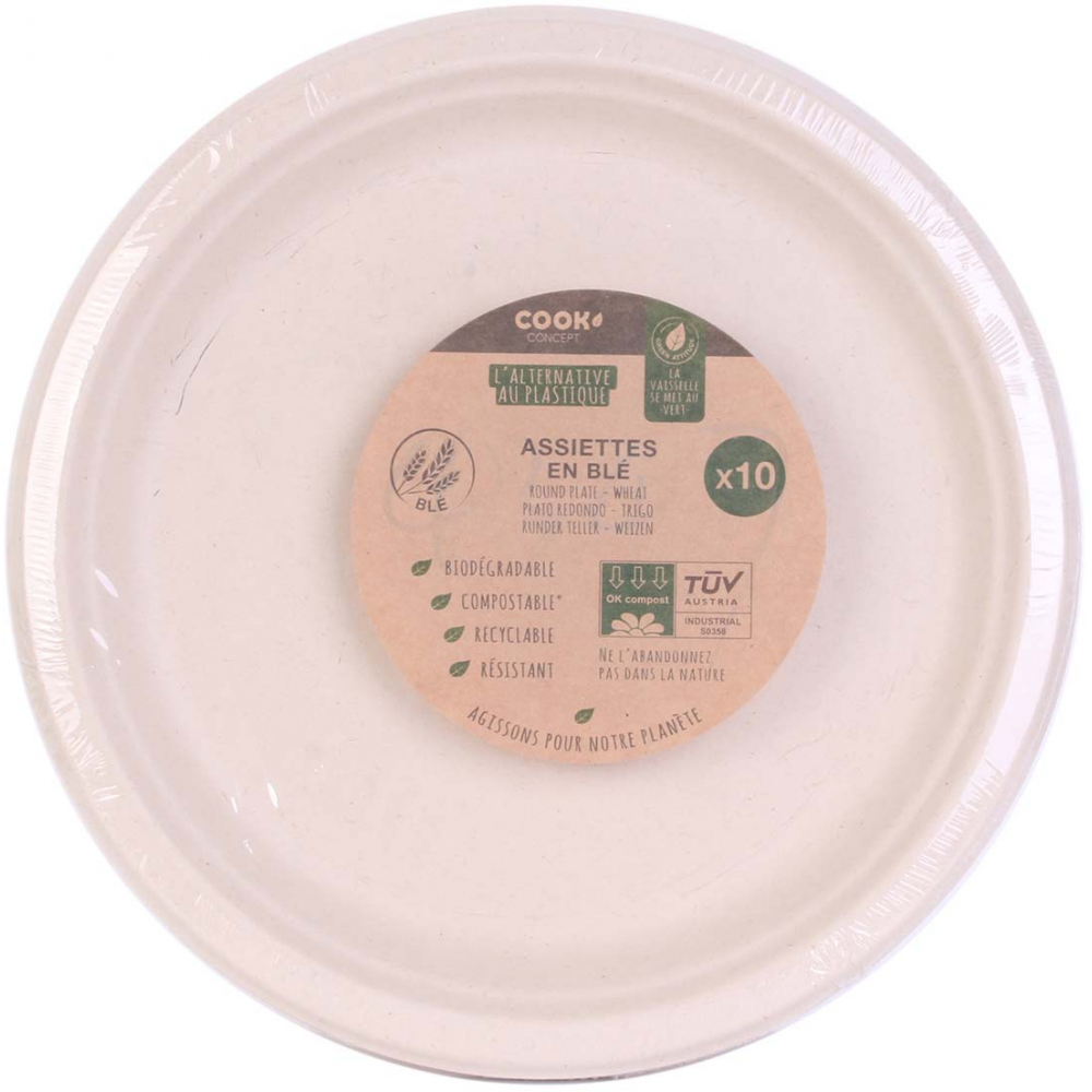 Set de 10 assiettes éco-responsables en blé 25 cm
