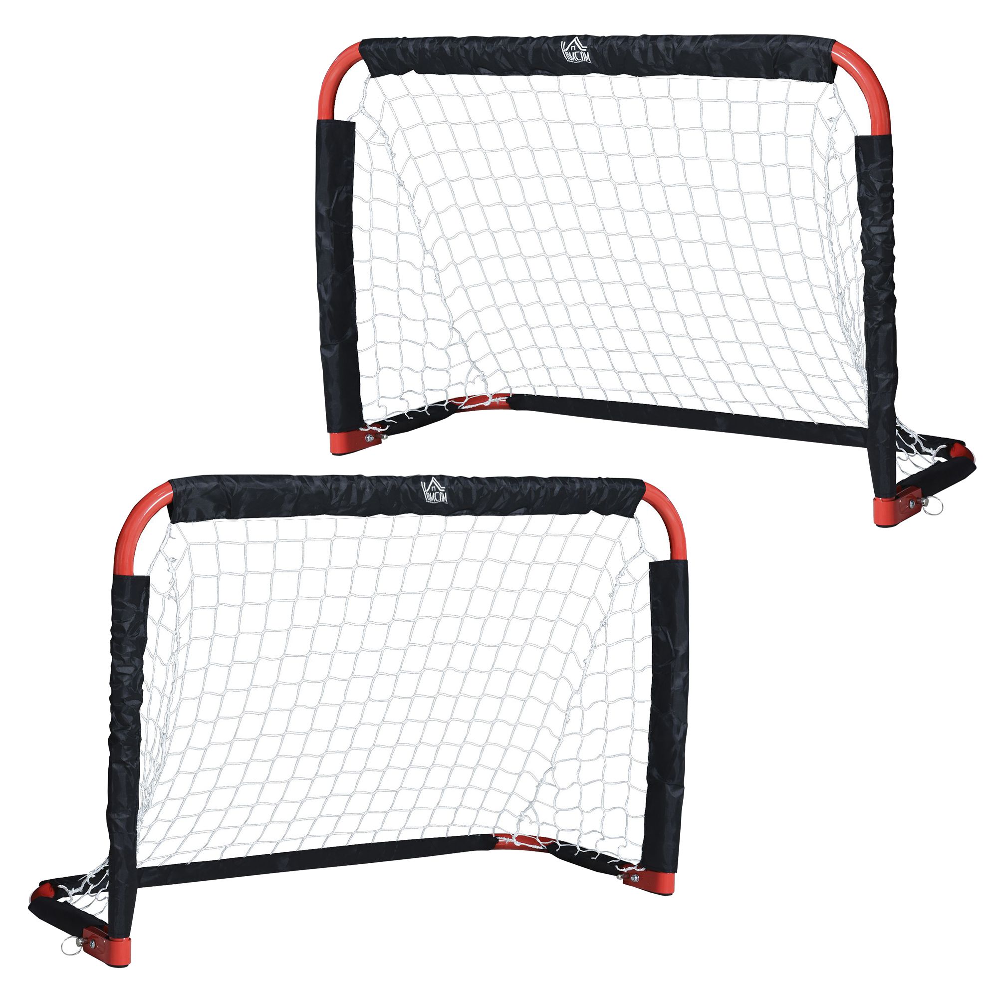 | Libellé | Set de 2 mini cages de football pliables avec filet - dim. 90L x 36l x 60H cm - métal époxy rouge oxford noir |