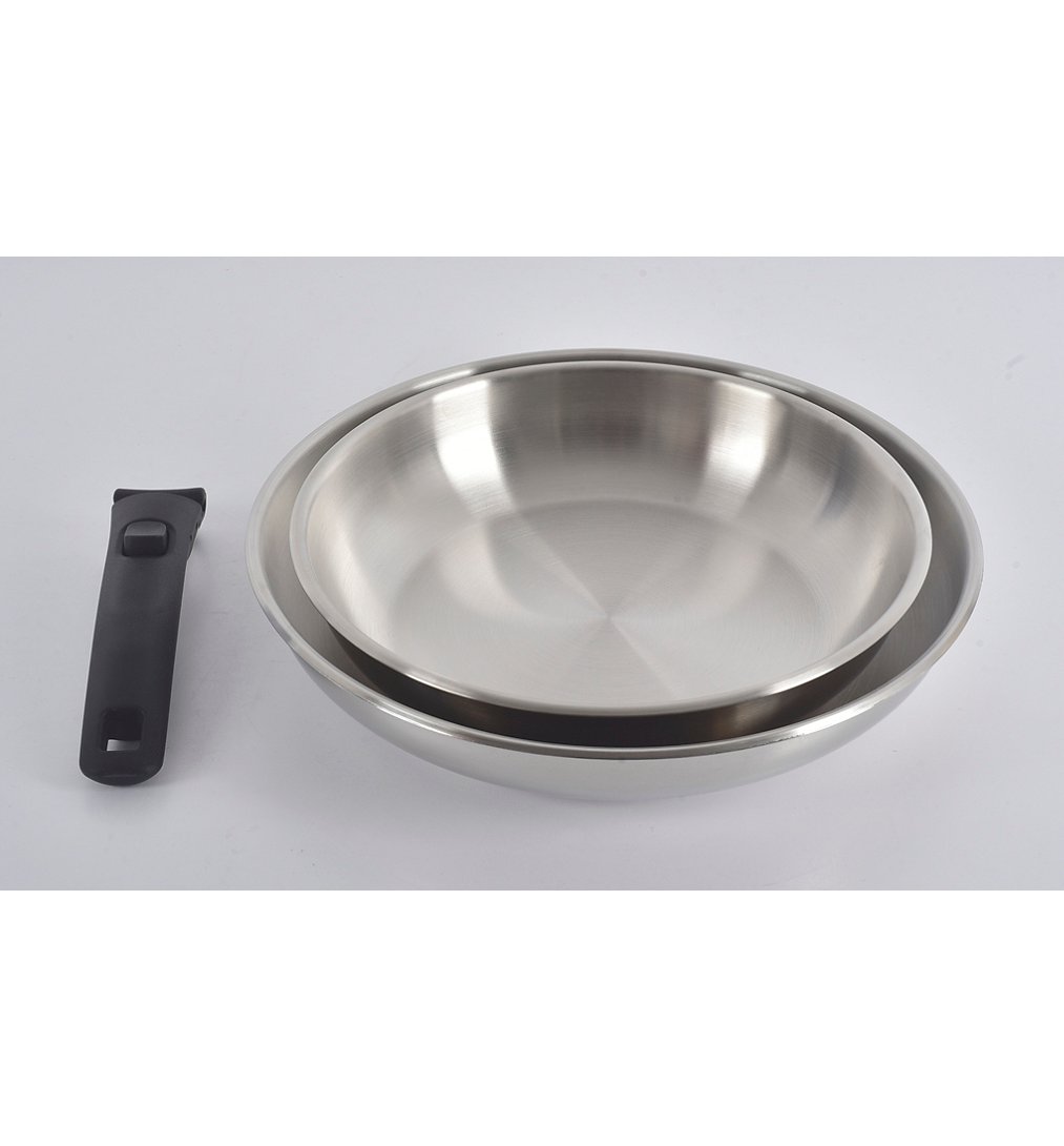 Set de 2 poêles en inox - ø 24/28cm - manche amovible inclus - tous feux dont induction - intérieur non revêtu - couleur extérieure inox - compatible au four traditionnel jusqu'à 230° (hors manche)