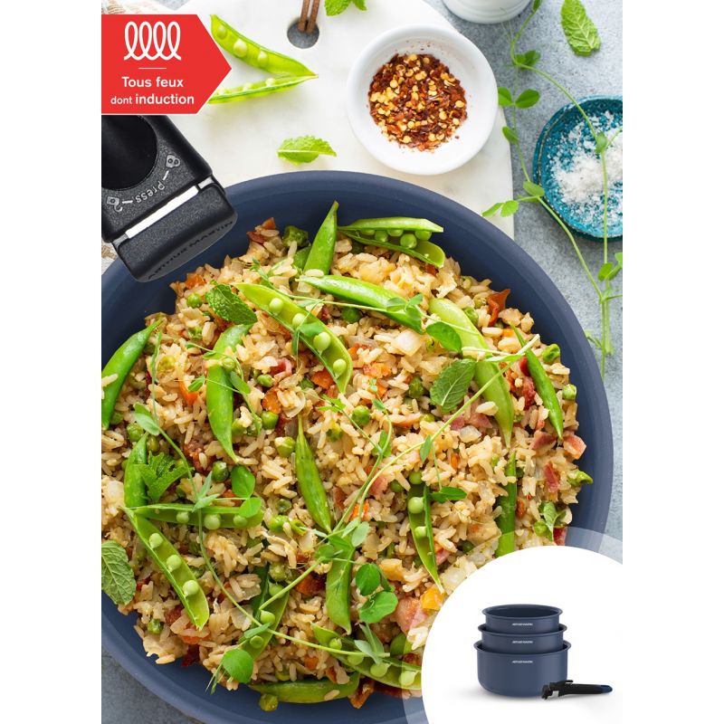 Libellé Set de 3 casseroles 16-18-20 cm poignée amovible Bleu Arthur Martin AM0320