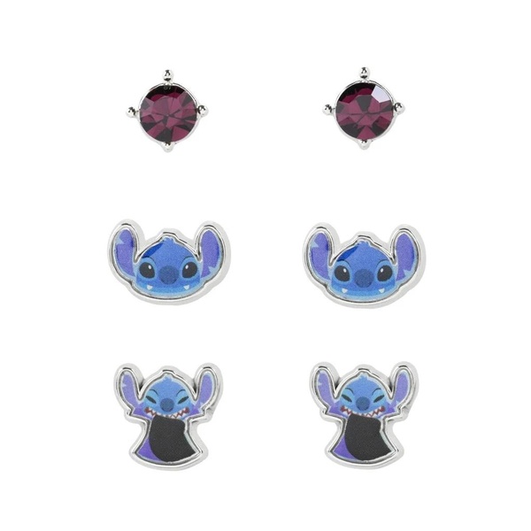 Set de 3 paires de boucles d'oreilles Disney Lilo & Stitch : Stitch+Pierre+tête Stitch (émaillé)