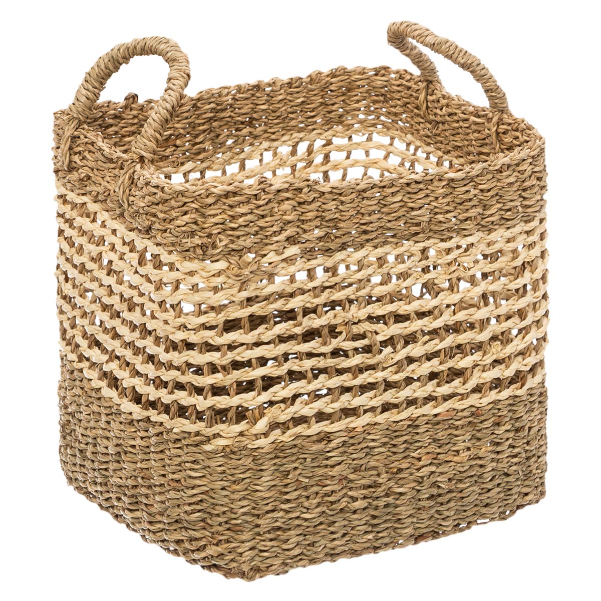 Set de 3 Paniers de rangement carré en Osier tressé et ajouré --
