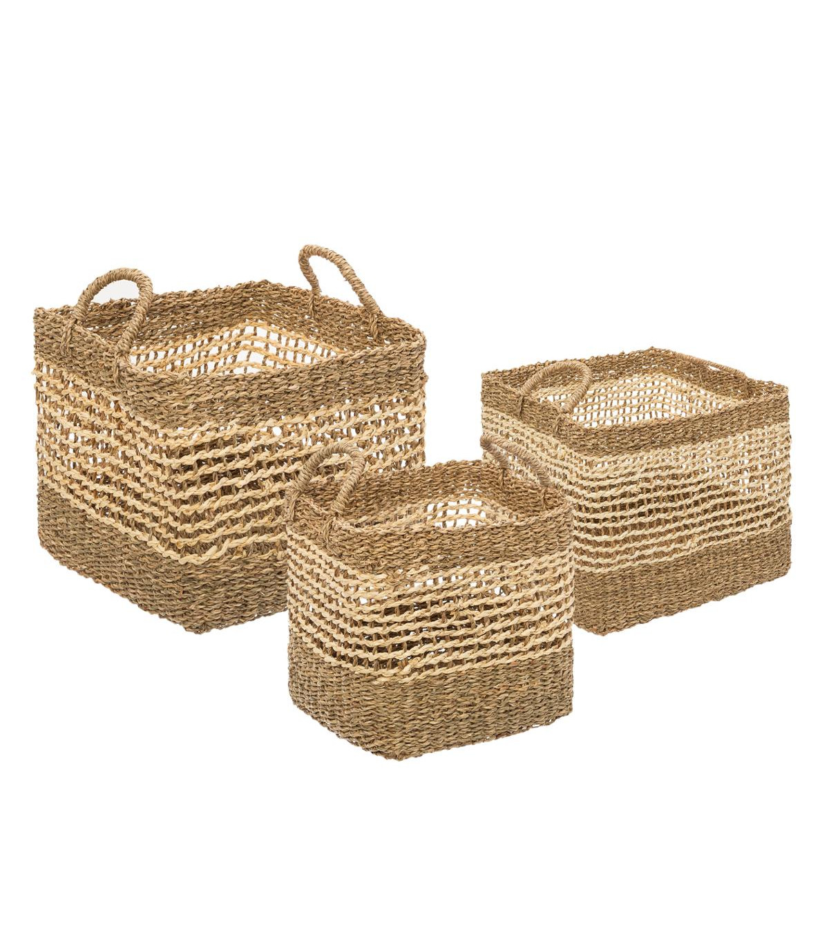 Set de 3 Paniers de rangement carré en Osier tressé et ajouré