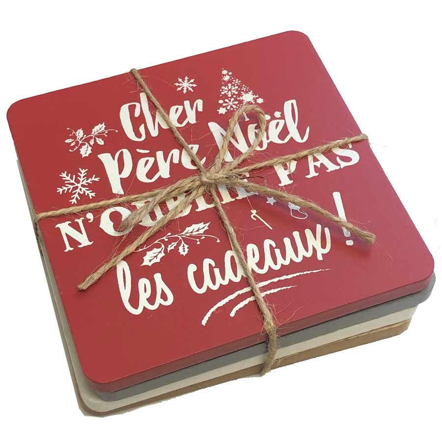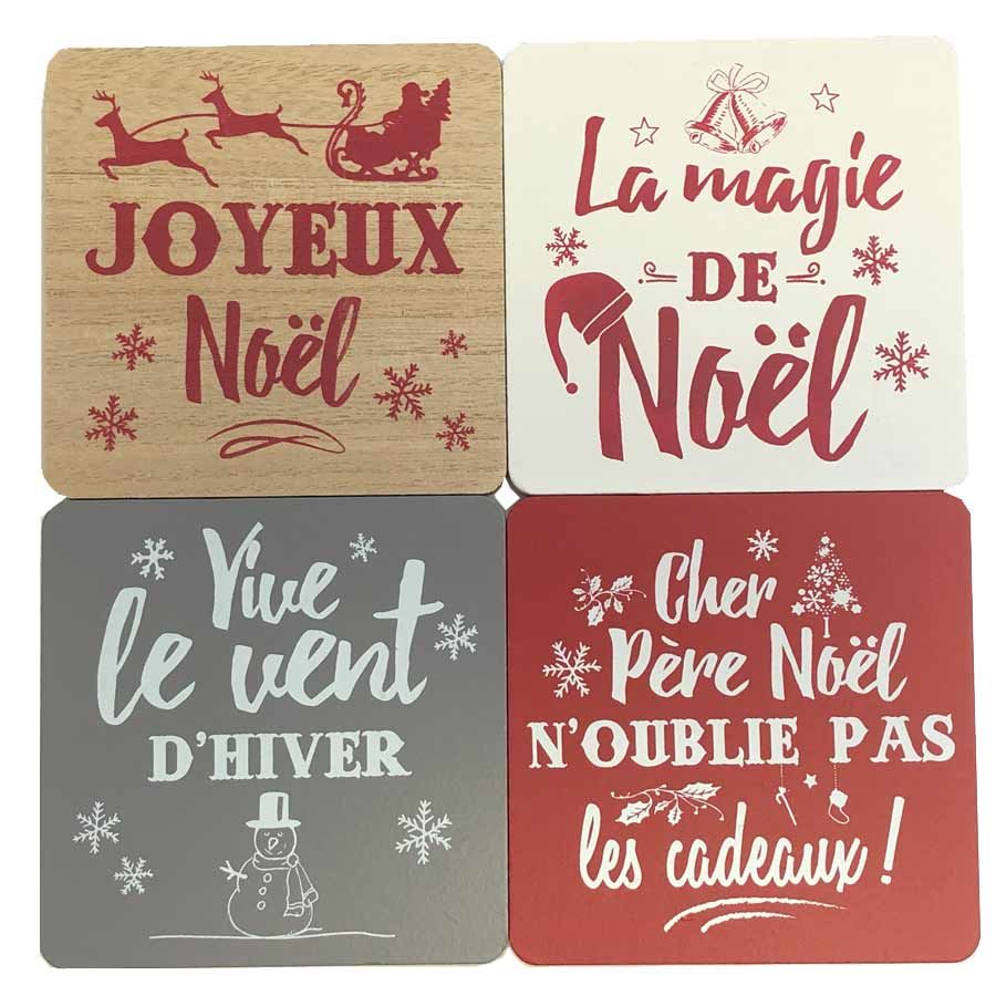 Set de 4 sous verres Noël Bois Dim : 10 x 10 cm