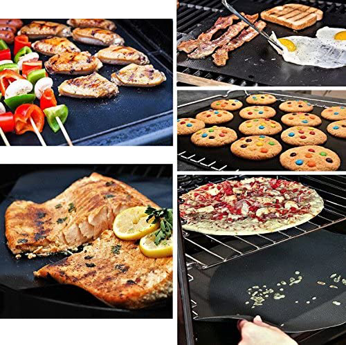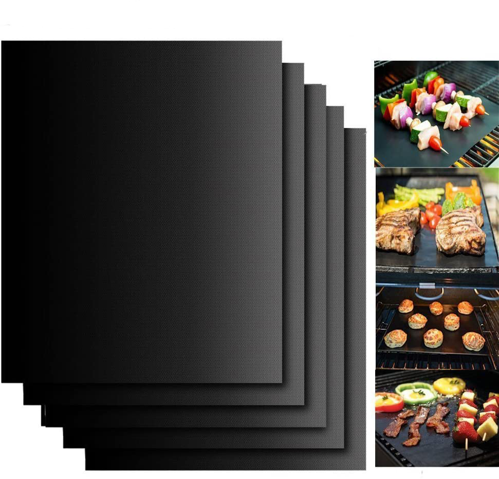 Set de 5 Tapis pour Barbecue Grille et Four 40x33cm Anti-adhérent et Réutilisable Noir Hobby Tech