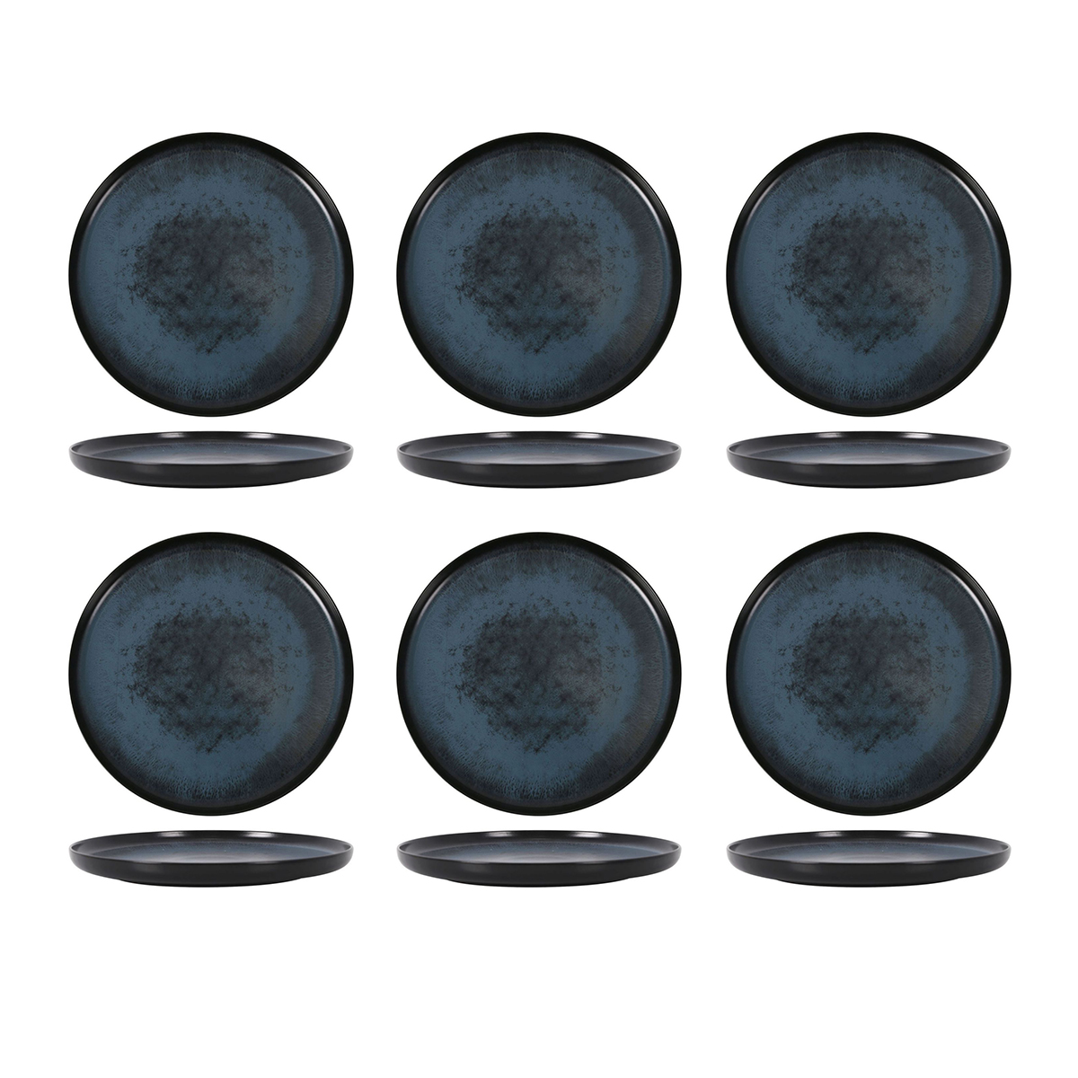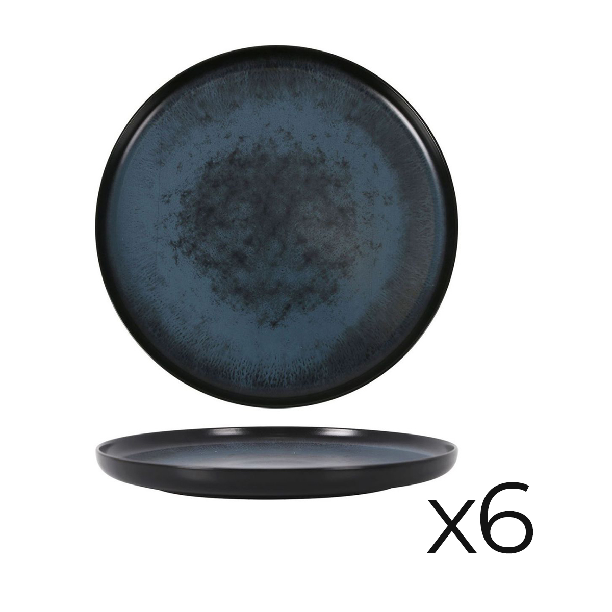 Set de 6 assiettes plates YAKI rondes à dessert, plat à service de table en Porcelaine décorée - diamètre