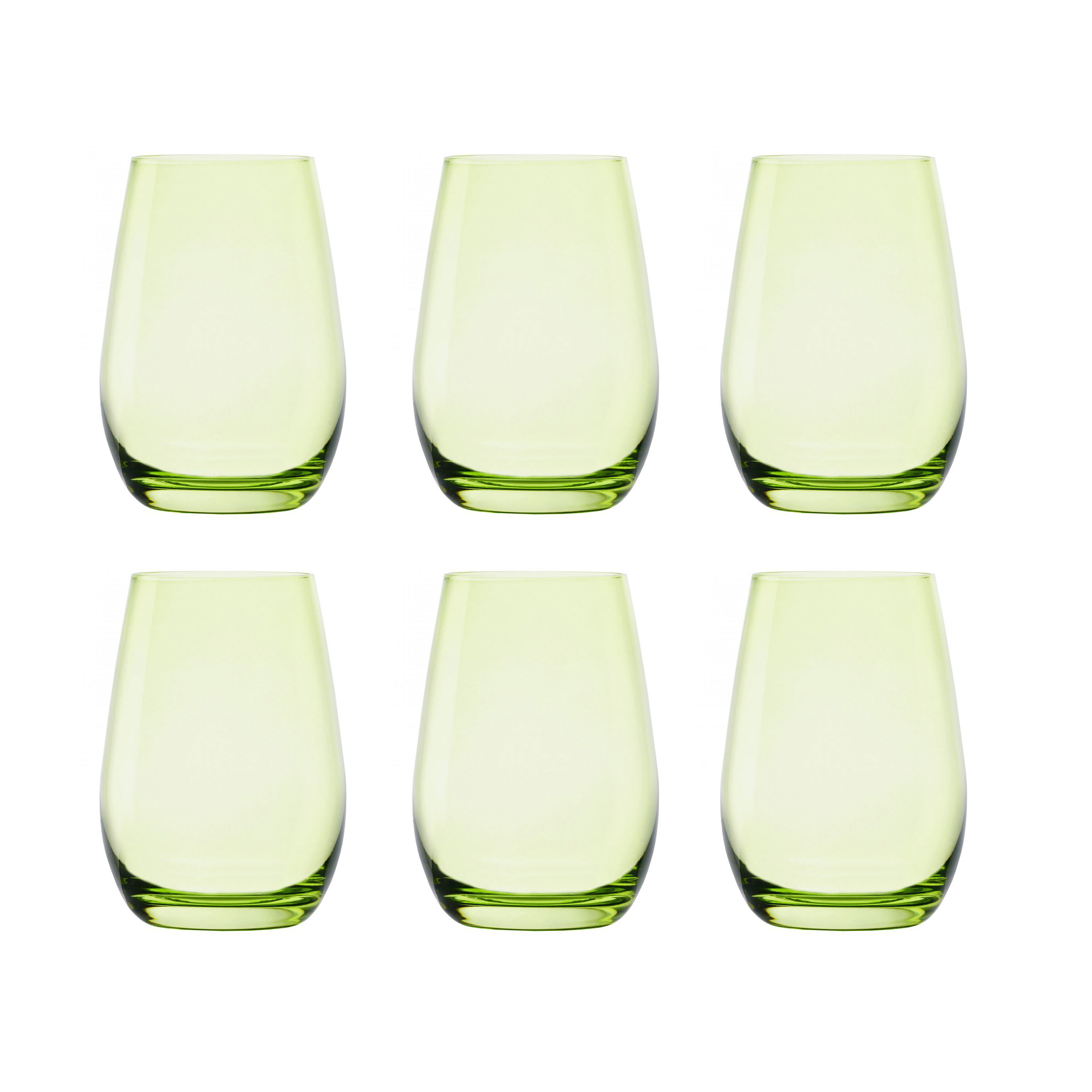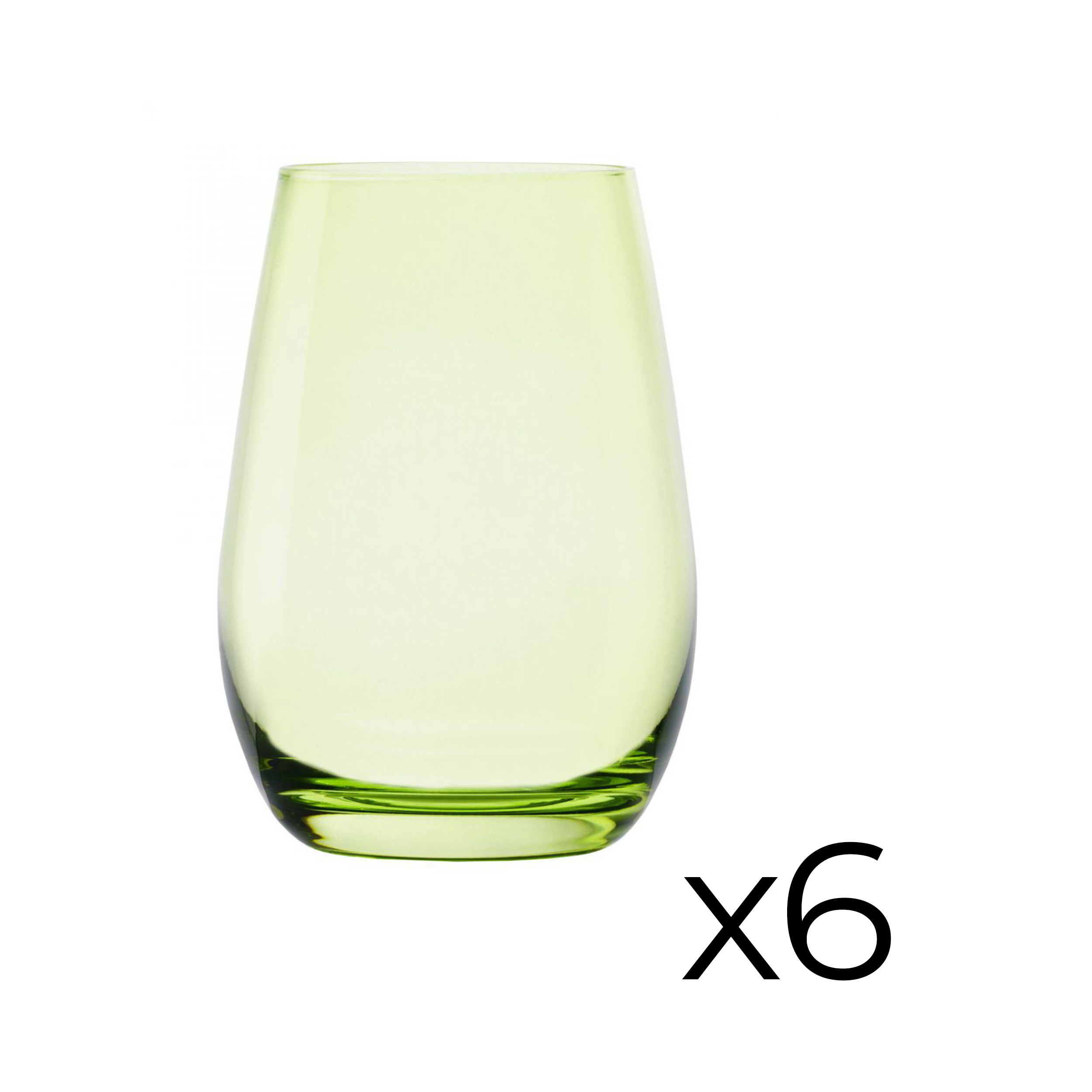 | Libellé | Set de 6 verres hautes empilables , 46.5cl pour boisson froide jus et vin, ALMA, cocktail, verre à eau vert - Dimension: 8,50 x 12 cm |