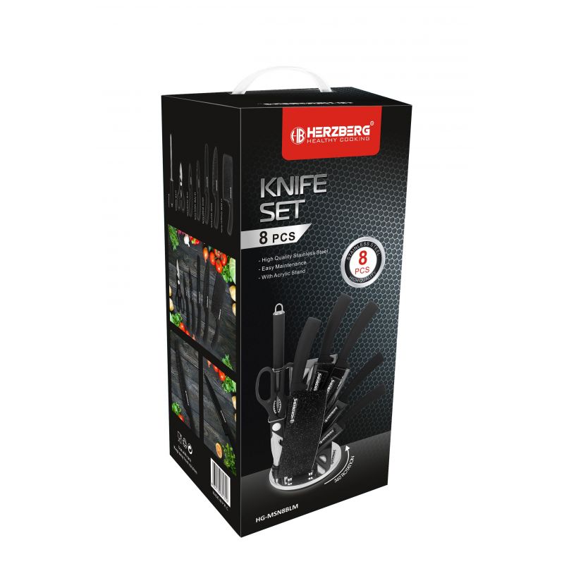 | Libellé | Set de couteaux avec support 8 pièces Marbre Noir Herzberg HGMSN8BLM |