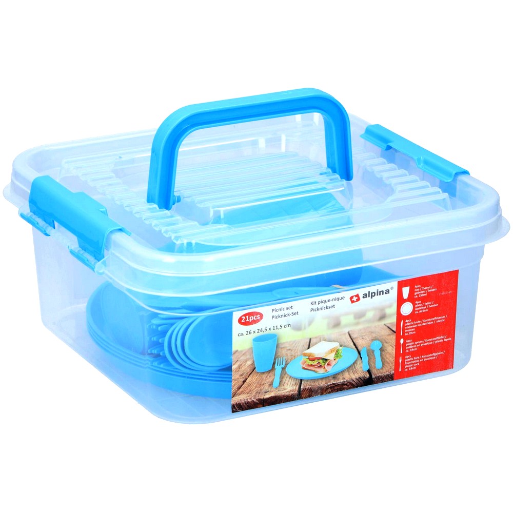 Set de pique nique complet 4 assiette 21 cm 4 gobelet 250 ml 4 couteau 4 fourchette 4 cuillere 1 valise de rangement 26x25x11cm