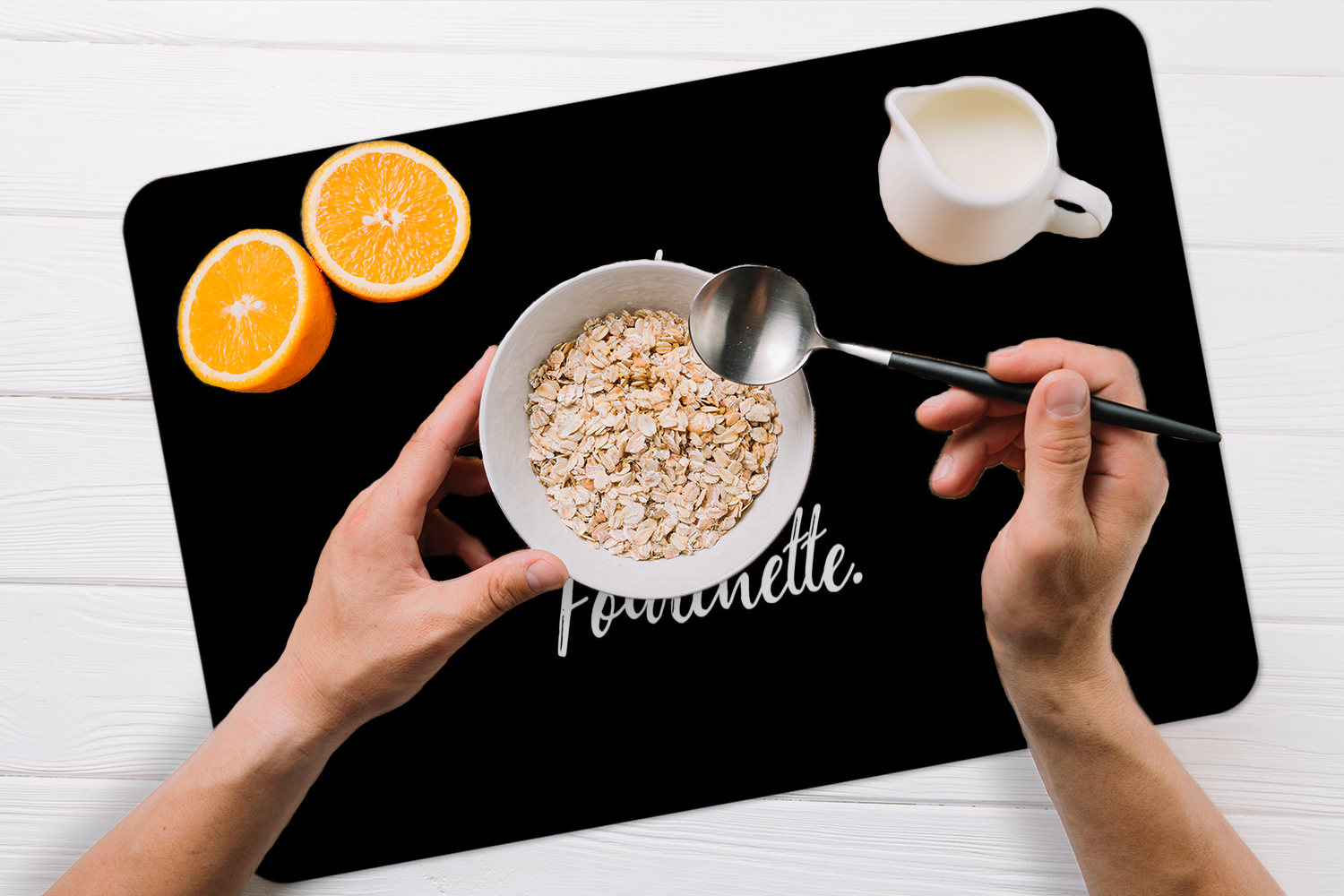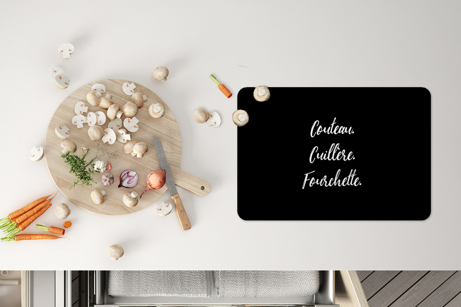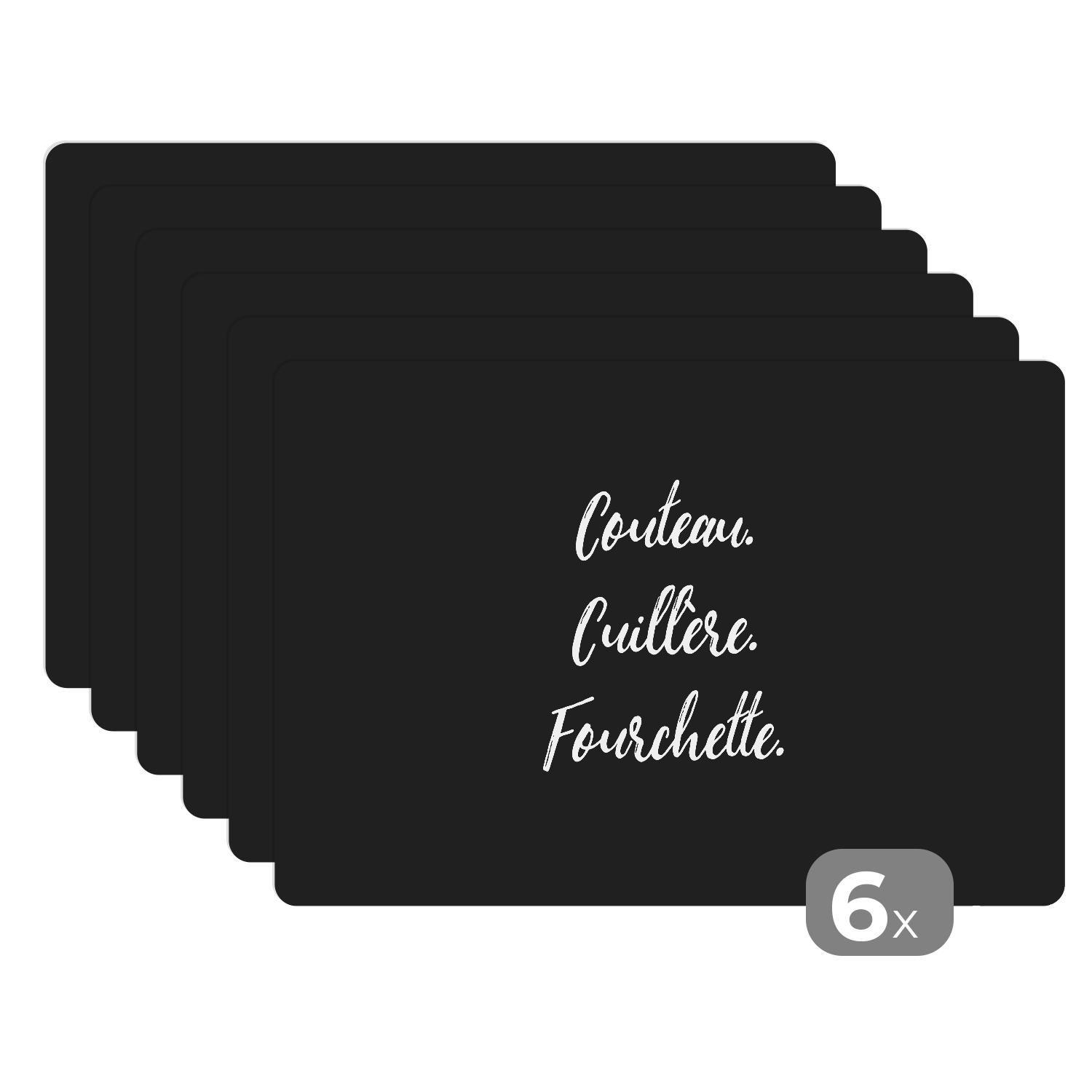 Libellé Set de table Couteau. Cuillère. Fourchette. - Proverbes - Citations - Coutellerie Lot de 6 dessous de table 45x30 cm Lavable