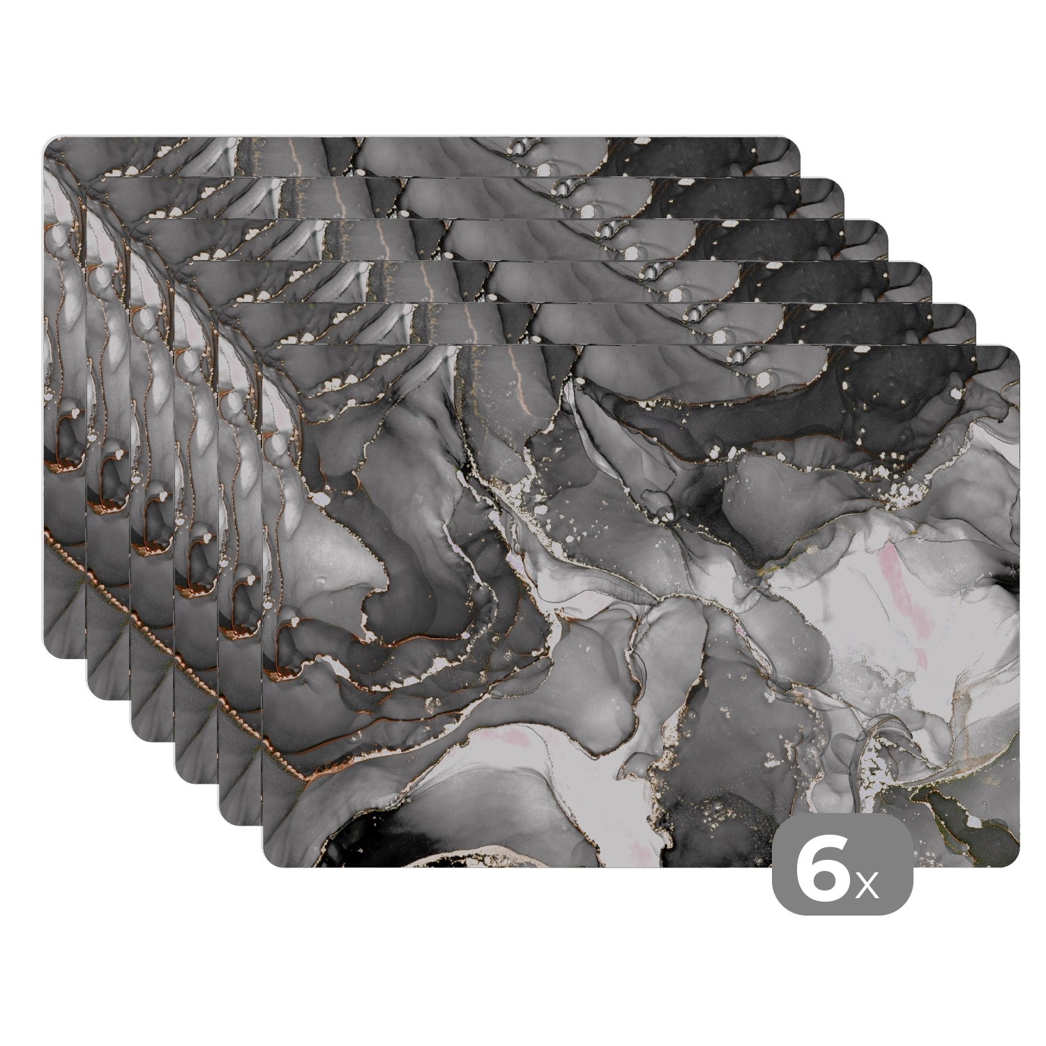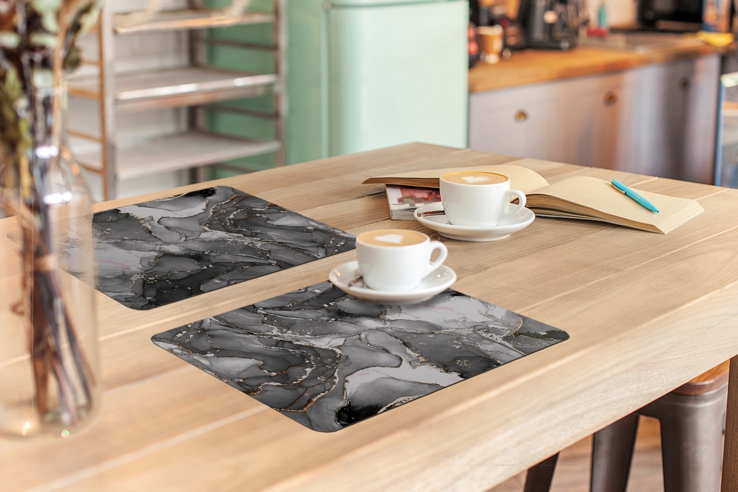 Set de table Marbre - Noir - Or - Gris Lot de 6 dessous de table 45x30 cm Lavable