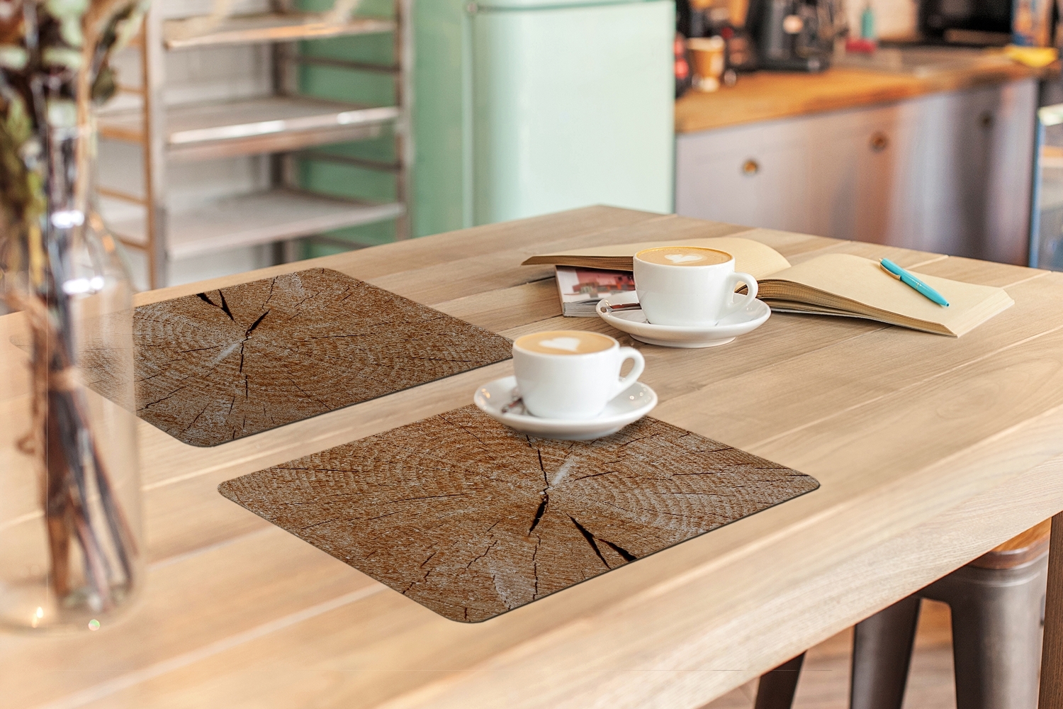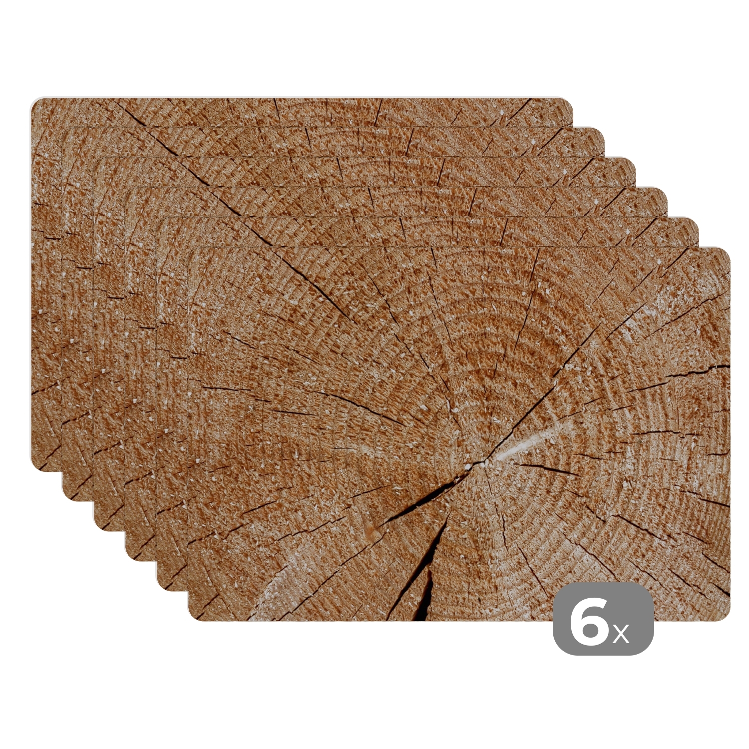 Set de table Tronc d'arbre - Anneaux d'arbre - Bois Lot de 6 dessous de table 45x30 cm Lavable