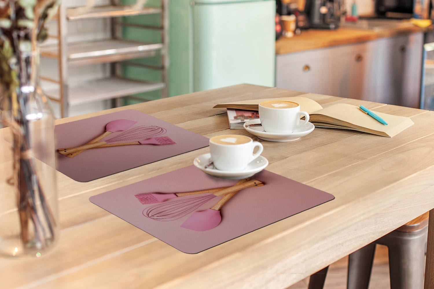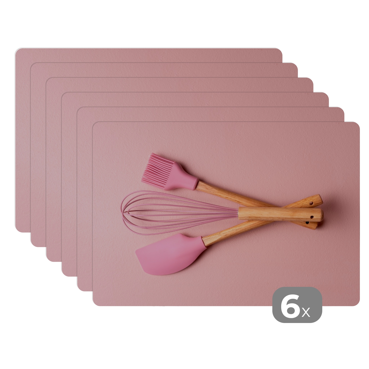 Set de table Ustensiles de cuisine - Rose - Pâtisserie Lot de 6 dessous de table 45x30 cm Lavable