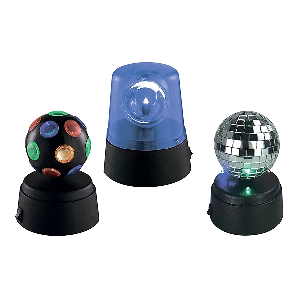 Set d'effets de lumière joyeux pour créer l'ambiance Trois effets offrant des jeux de lumières rotatifs Fonctionnement sur piles