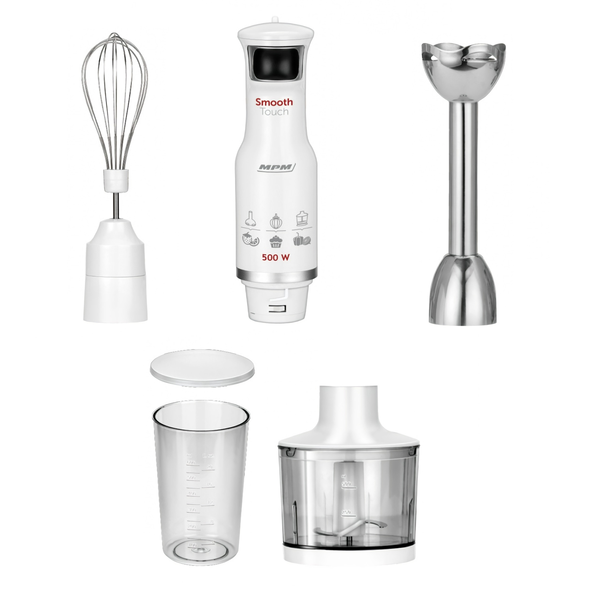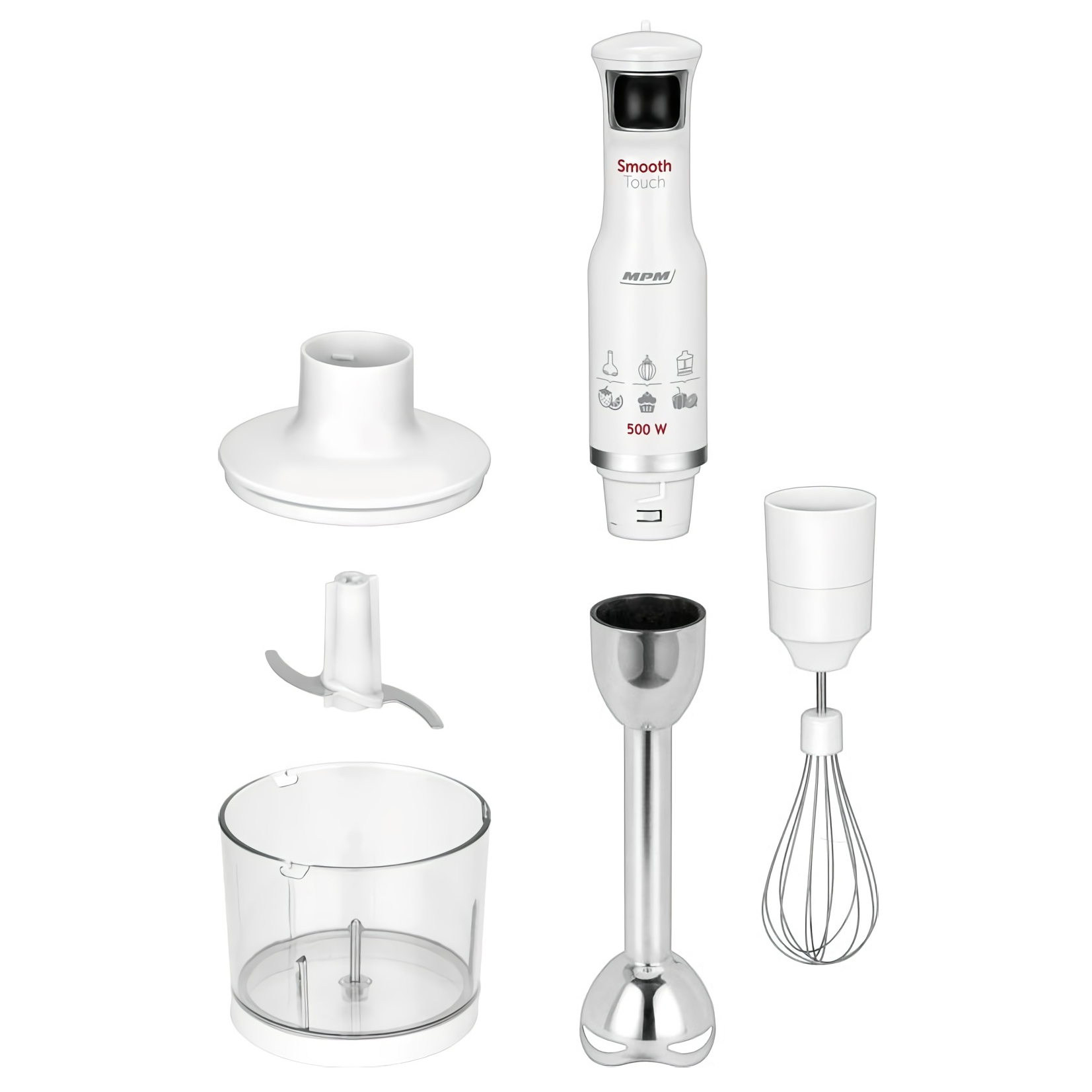 Set Mixeur Plongeant, Hachoir Multi-usages, Fouet, Vitesse Ajustable, sans BPA 500 Blanc MPMMBL-28