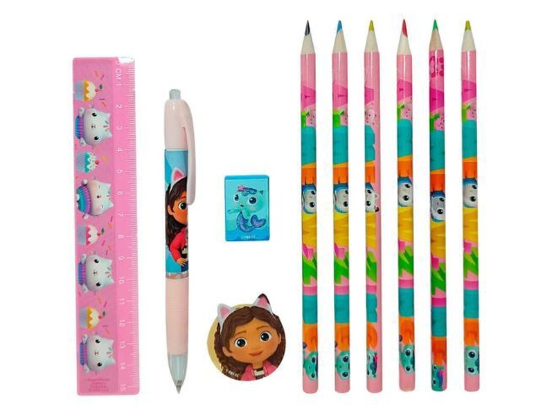 Set papeterie Gabby et la maison magique [Contient Trousse,règle, stylo, gomme, couleurs, Dimensions 30x2
