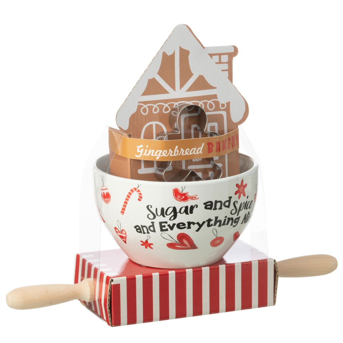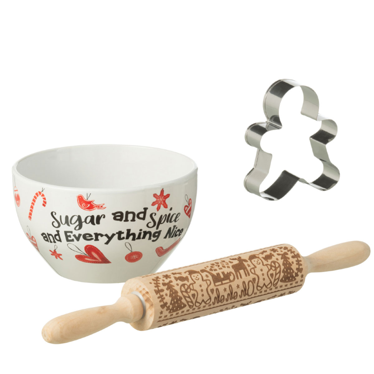 Set pâtisserie pain d'épice Matière : Céramique, bois et métal Dimensions du bol : Hauteur 9 cm - Diamètre 15 cm Dimensions du rouleau : Hauteur 4.5 cm - Longueur 4.5 cm Dimensions de l'emporte pièce : Hauteur 2 cm - Longueur 7.5 cm - Largeur 6 cm Découvrez notre charmant set pâtisserie "Pain d'Épice", un cadeau idéal pour célébrer les fêtes de Noël avec douceur et créativité. Ce magnifique ensemble est présenté avec soin et comprend un grand bol en céramique aux motifs festifs, parfait pour mélanger vos ingrédients avec style. Accompagné d'un rouleau à pâtisserie en bois, il vous permettra d'étaler la pâte avec facilité. Pour couronner le tout, un emporte-pièce en forme de bonhomme de pain d'épice vous invitera à réaliser de délicieuses créations sucrées qui raviront petits et grands. Offrez ce set pour des moments de partage et de gourmandise inoubliables pendant les fêtes !