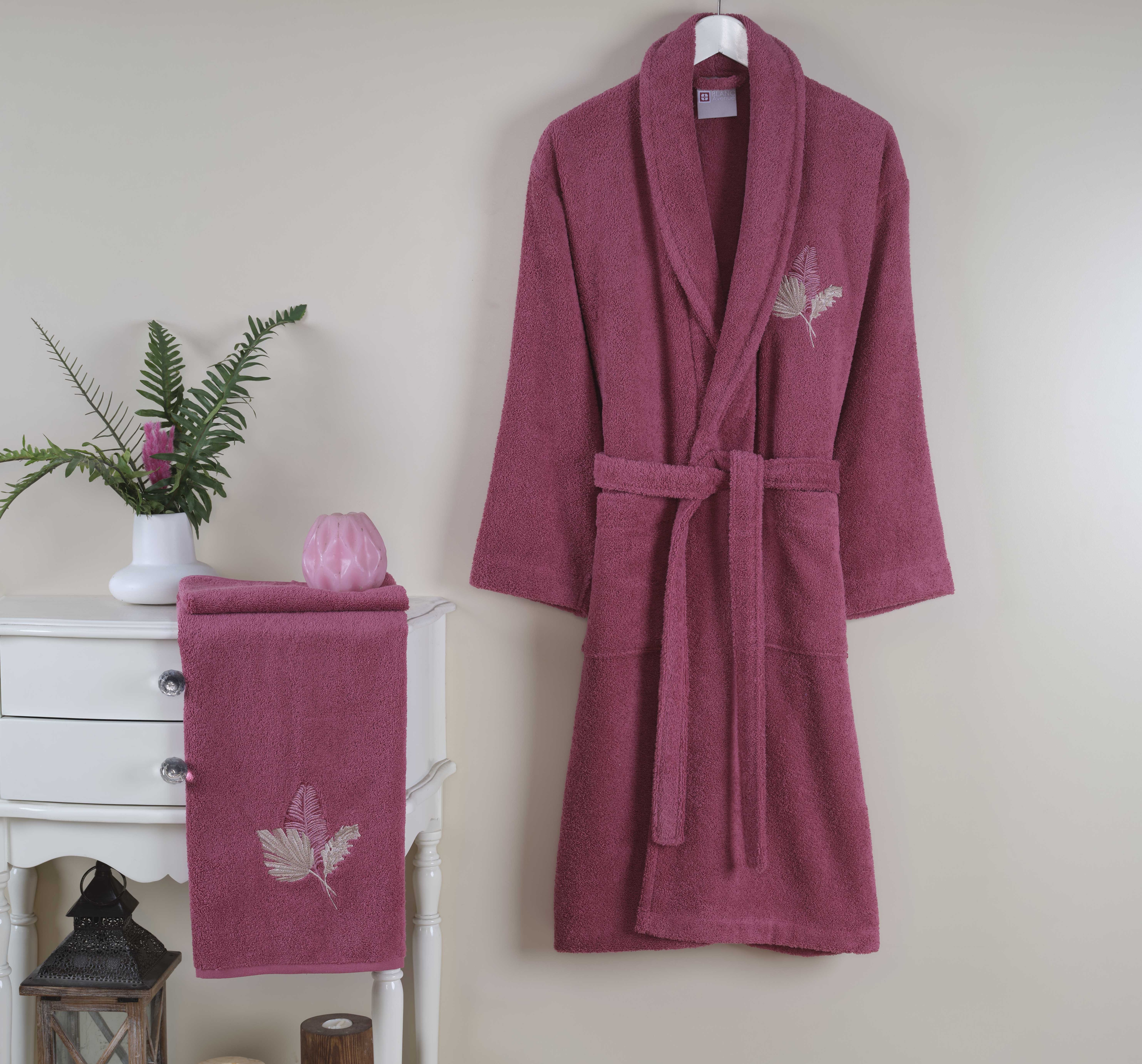 Set Peignoir et serviette femme, taille serviette 50x90 cm. Lavage en machine 60°. Certifié Oeko-tex