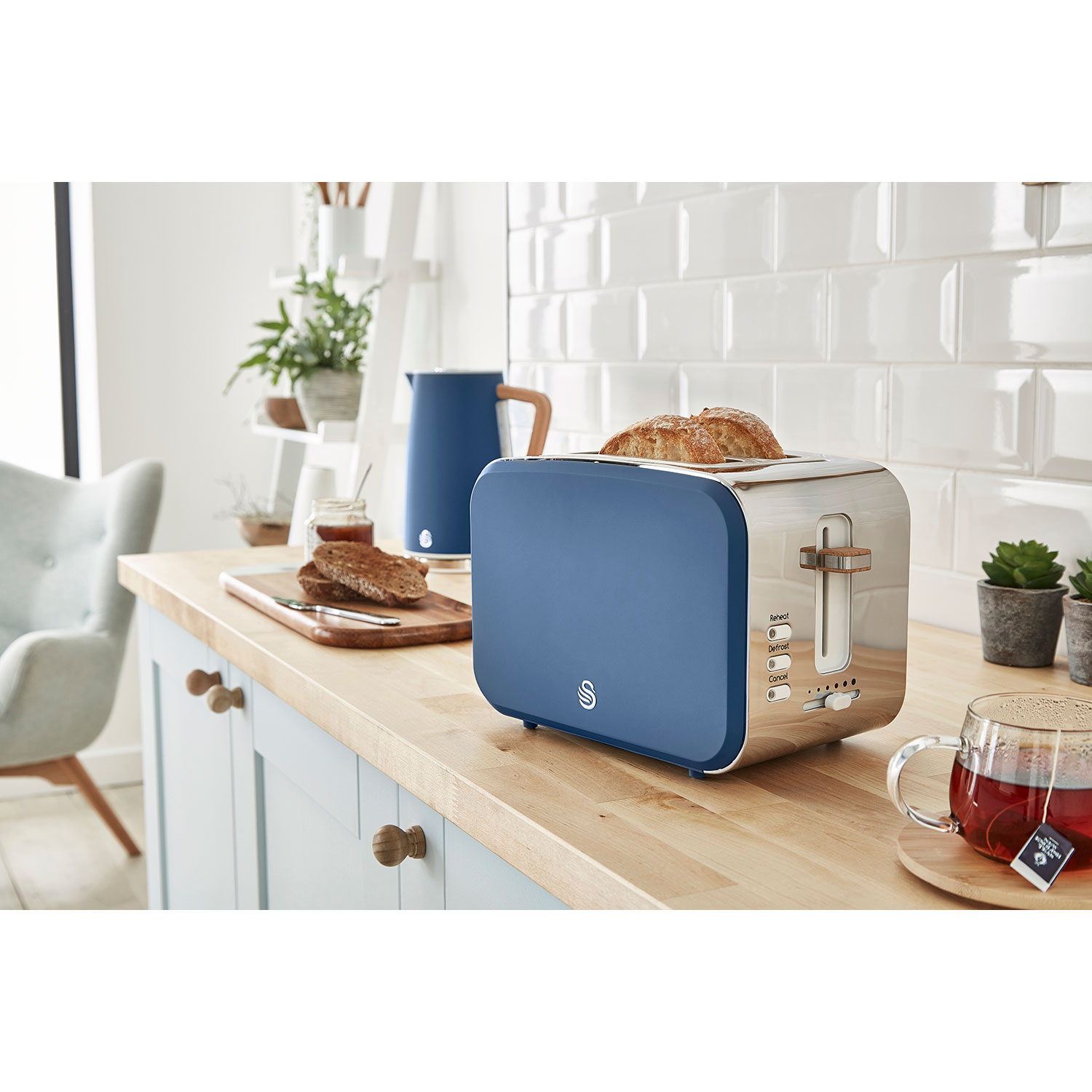 Set petit-déjeuner Bouilloire sans fil 1,7 L grille-pain 2 Nordic Bleu 2200 Bleu SWANSTP2090BLUNEU