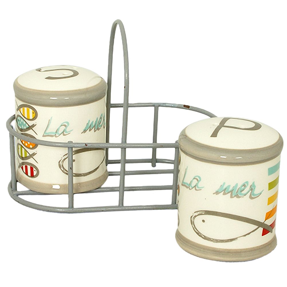 Set Poivre et Sel Salière et Poivrier Céramique Panier en métal Longueur du panier : 12 cm