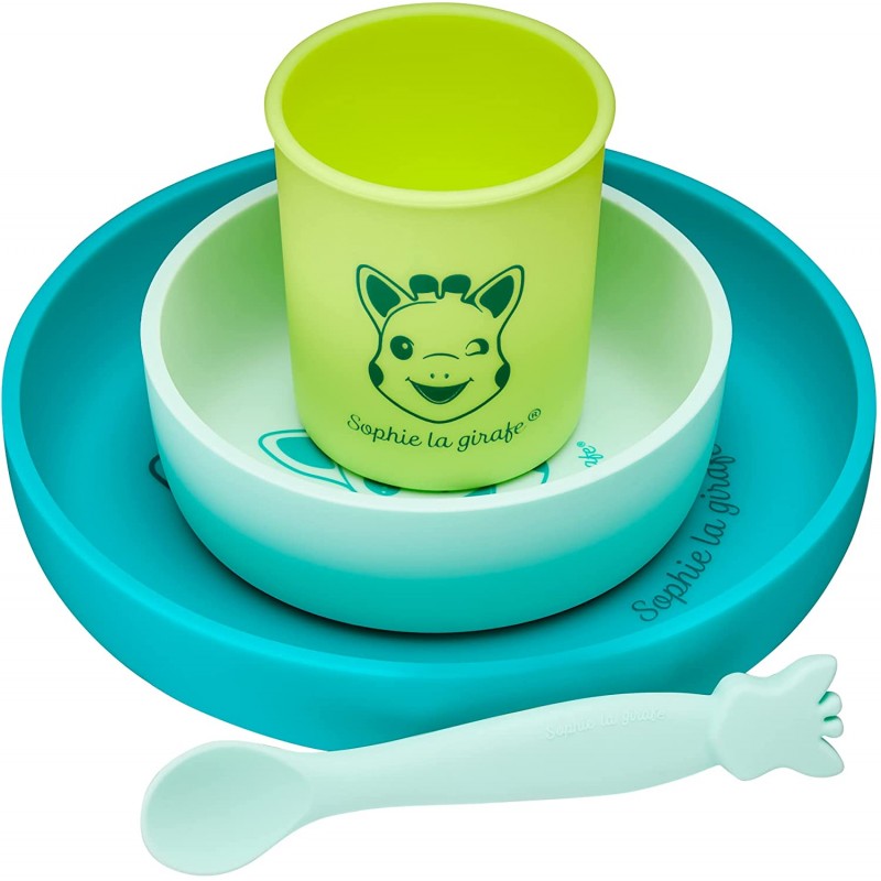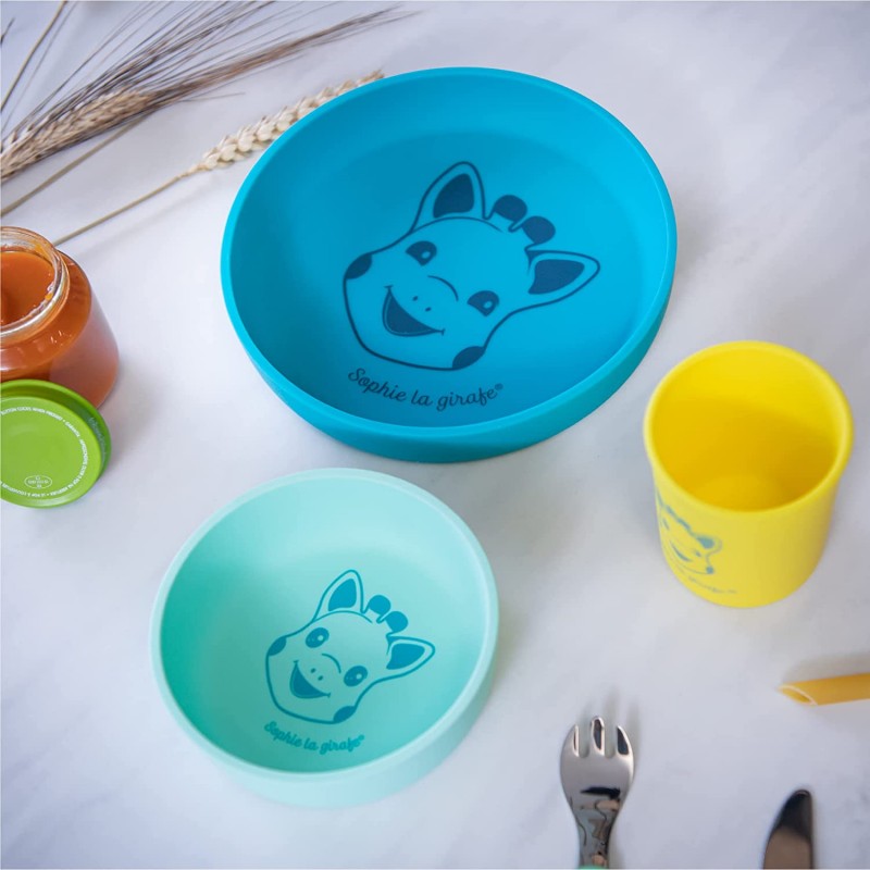 Découvrez le set repas Sophie la girafe complet pour accompagner bébé lors de ses premiers repas.
