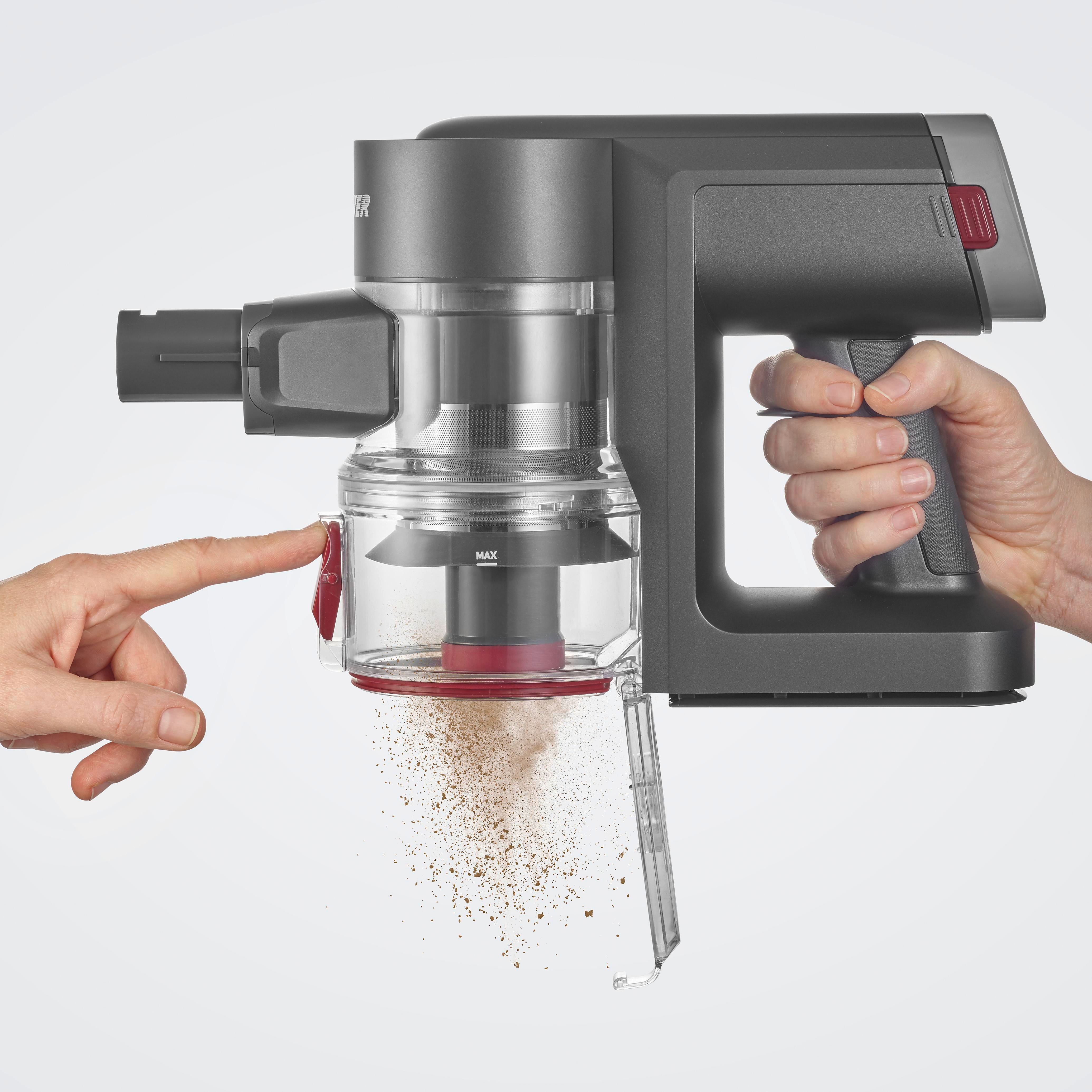 Severin HV 7968. Type de produit: Aspirateur balai, Type de conteneur à poussière: Sac à poussière, Couleur du produit: Anthracite, Rouge, Argent. Type de nettoyage: Sec, Niveau sonore: 75 dB, Rotation du rouleau (max): 100000 tr/min. Source d'alimentation: Batterie, Puissance d'alimentation max.: 300 W, Puissance d'aspiration: 20000 Pascal. Largeur du colis: 780 mm, Profondeur du colis: 140 mm, Hauteur du colis: 295 mm. Largeur: 115 mm, Profondeur: 210 mm, Hauteur: 240 mm