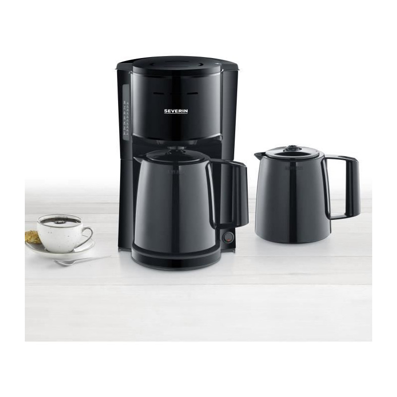 | Libellé | SEVERIN KA9252 Cafetiere filtre isotherme avec 2 verseuses, 16 tasses soit 1 litre par verseuse, Puissance: 1 000 W, Inox / Noir |