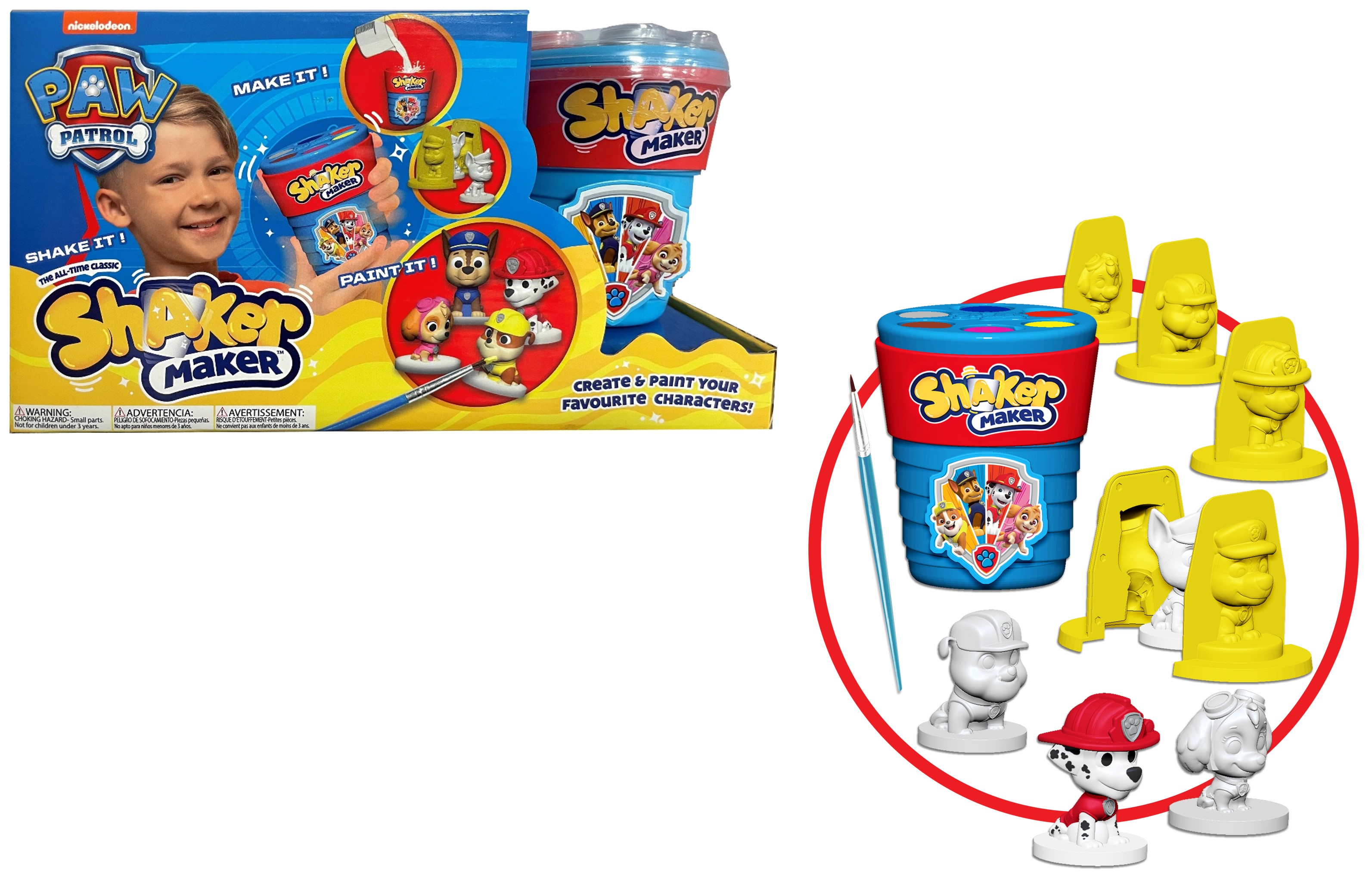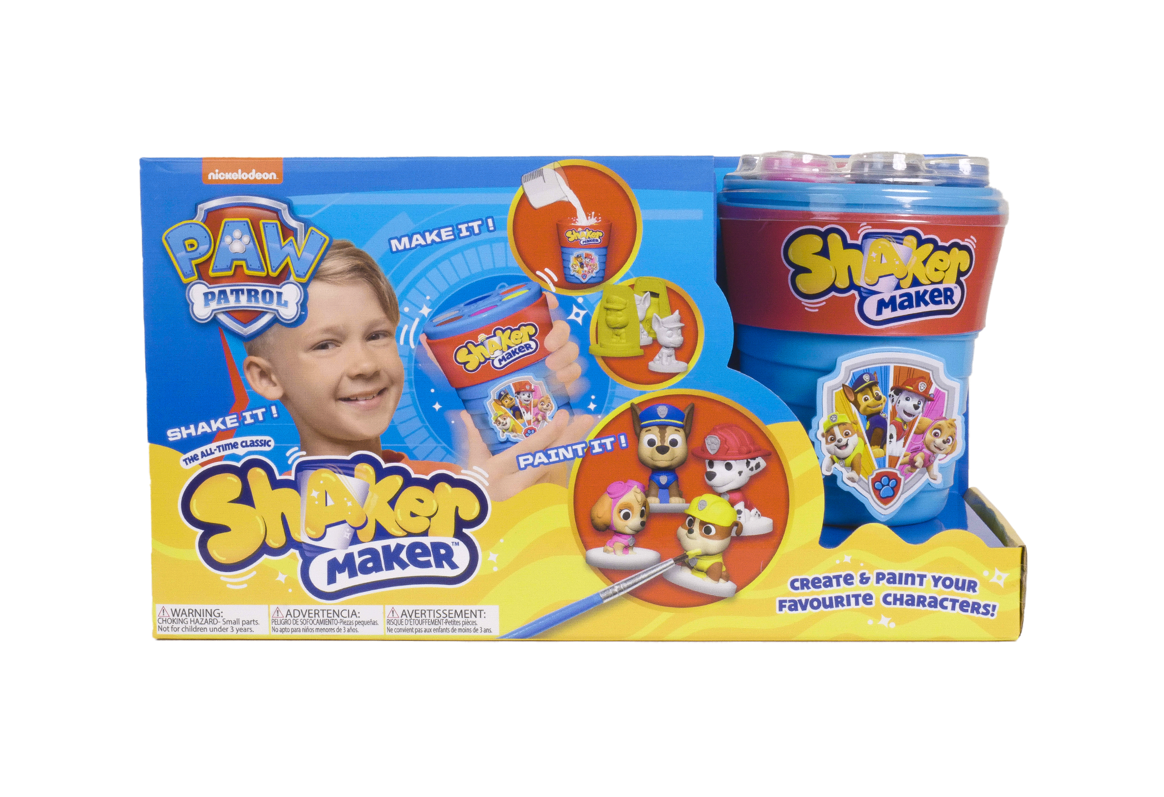 "Shaker Maker - La Pat Patrouille Mélange la poudre avec l’eau. Secoue, secoue.... Laisse sécher et démoule. Décore tes personnages avec la peinture et le pinceau. Inclut : 1 x Shaker Maker 4 x moules 1 x Peinture 6 couleurs 1 x Pinceau 300g x Mélange de poudre (10 moulages)"