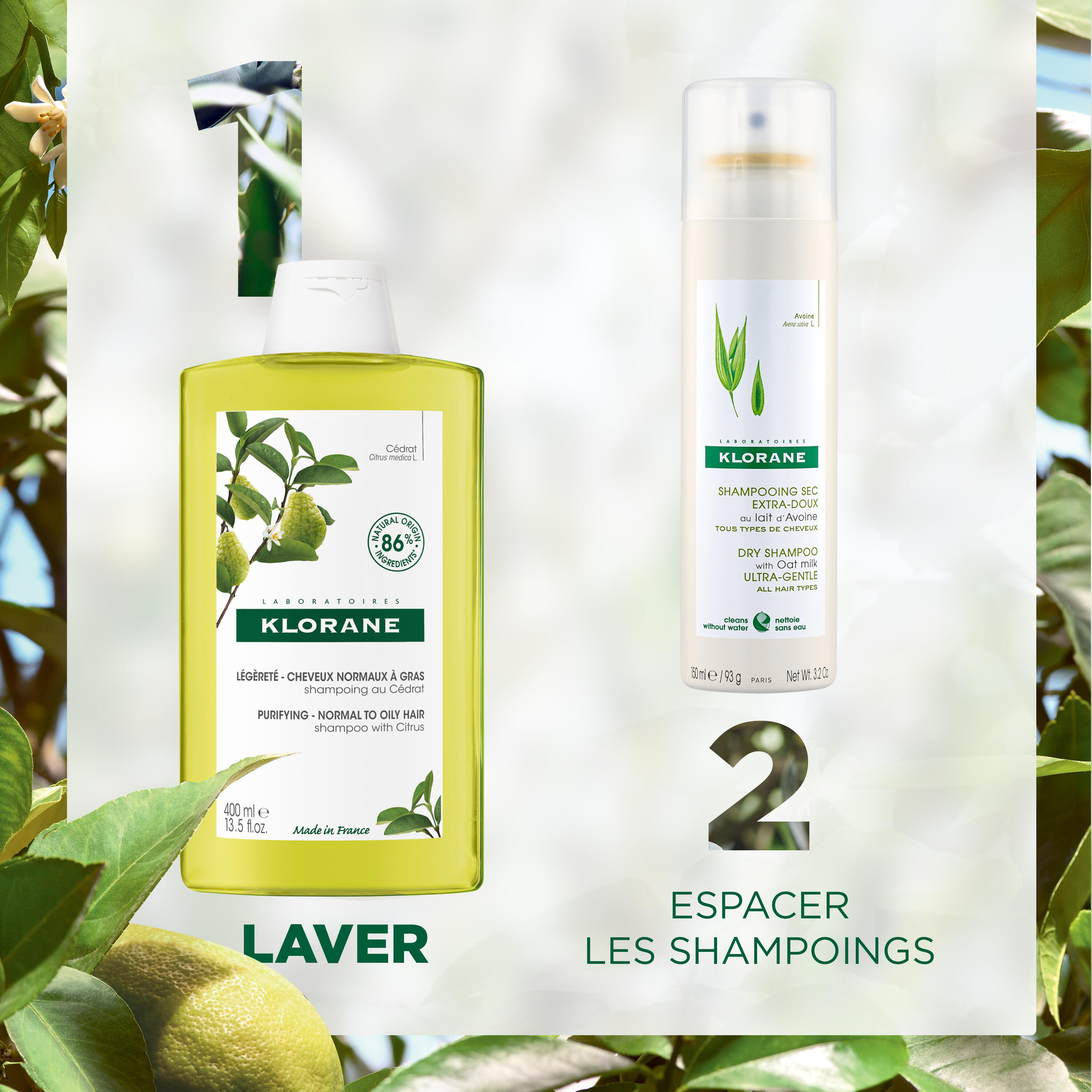 Klorane a formulé ce Shampoing assainissant et énergisant pour répondre aux besoins des cheveux normaux qui regraissent vite. Après quelques jours, les cheveux s’alourdissent, deviennent ternes et manquent rapidement de tonus. Dès la première application, le Shampoing au Cédrat nettoie et purifie le cuir chevelu en éliminant efficacement le sébum et les impuretés. Sa formule unique associant un actif séborégulateur à la pulpe de Cédrat, agrume ancestral cultivé sous le soleil corse, laisse les cheveux propres plus longtemps et révèle un cuir chevelu plus sain. Gorgés d’énergie, nets et plus légers, les cheveux regraissent moins vite et gagnent en éclat. - Nettoie : grâce à sa base lavante douce formulée pour un usage fréquent. - Tonifie : la pulpe de Cédrat aux propriétés tonifiantes et assainissantes contribue à garder la chevelure en pleine forme en apportant légèreté, tonus et vitalité. - Assainit : libère de l’excès de sébum et purifie le cuir chevelu dès la première application. Le Shampoing assainissant à la pulpe de Cédrat apporte légèreté aux cheveux qui restent propres plus longtemps. Son Green Impact Index est B, on vous explique pourquoi. Le Green Impact index mesure l'impact environnemental et sociétal de nos produits à partir d'une note globale intégrant 20 critères. Le Green Impact Index ne mesure pas l’efficacité du produit, ni ses effets sur la santé de chacun, mais son respect de la nature et de la société dans son ensemble (éco-socio-conception). Chez Pierre Fabre, on estime qu’un produit commence à être éco-socio-conçu à partir d'une note B, même si l’objectif est à terme d’atteindre A. L’impact environnemental et sociétal de ce produit est : Emballage comportant au moins 84% de matières recyclées Packaging contenant des matériaux majoritairement recyclables Formule biodégradable** 86% d’ingrédients d’origine naturelle***** **Selon le test OCDE 301B *****Hors gaz Fabriqué dans une usine certifiée pour l’environnement*** ***Selon la norme ISO 14001 ou ECOVADIS