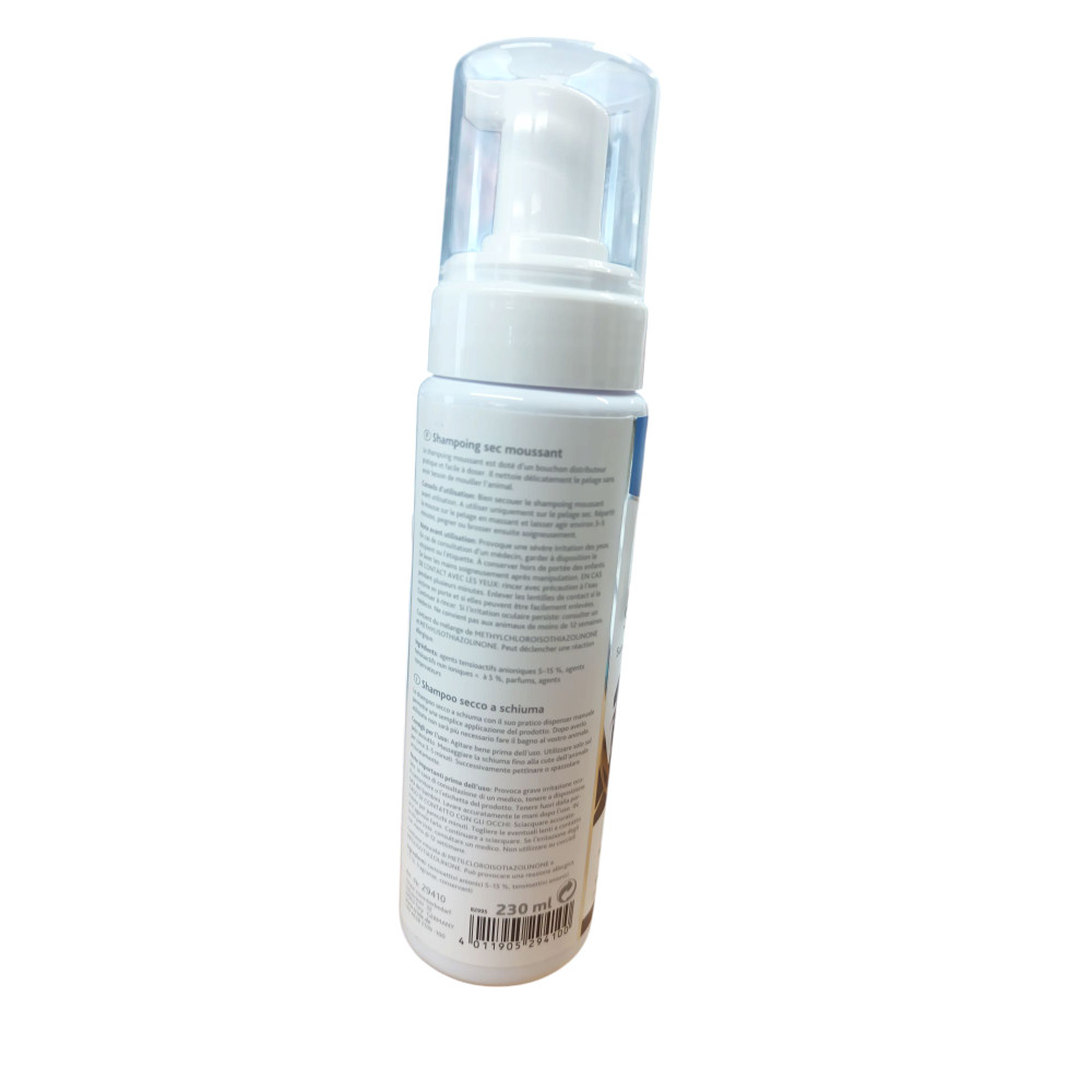 | Libellé | Shampoing sec moussant 230 ml pour chiens et chats |