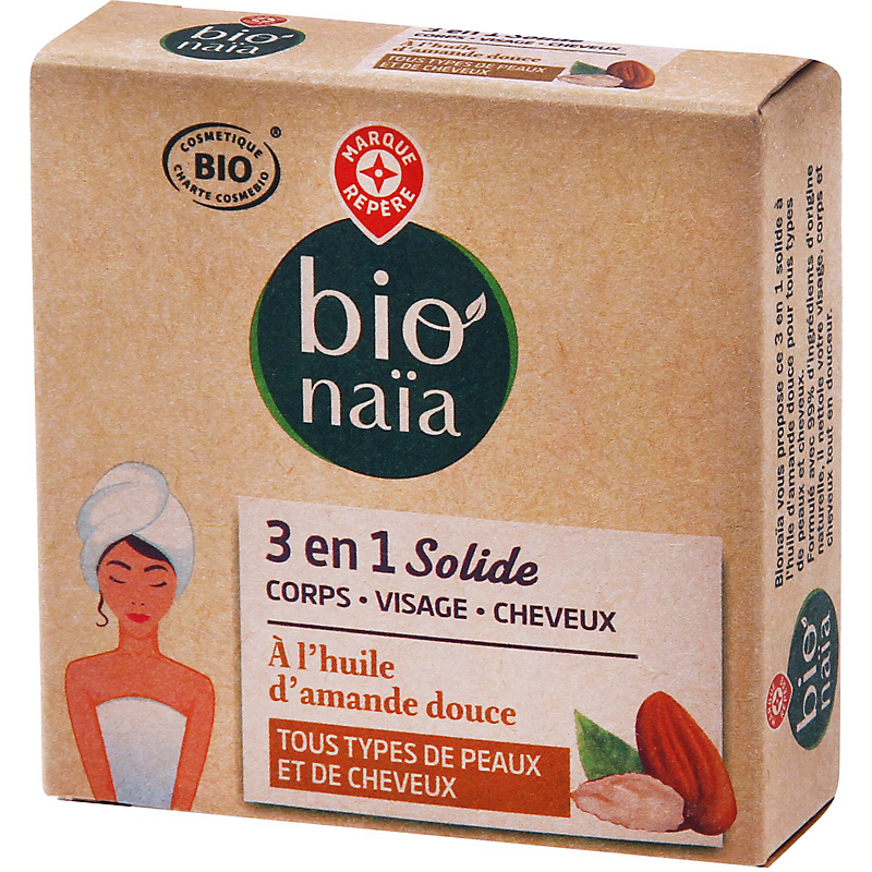 Shampooing Douche Solide 3 en 1 à l'Huile d'Amande Douce Bio - 85g - BIONAÏA
