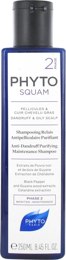 Phyto Phytosquam Shampooing Relais Antipelliculaire Purifiant 250 ml est un shampooing recommandé en phase 2 (relais) de la routine antipelliculaire Phytosquam, pour prévenir la réapparition des pellicules. Conçu pour les cuirs chevelus gras, ce shampooing permet de prolonger l'efficacité antipelliculaire du Shampooing Traitant Antipelliculaire Intensif Phytosquam et de prévenir la réapparition des pellicules. Sa formule contient : des extraits de poivre noir et de bois de Guyane, une extraction de Chélidoine. Résultats : les cheveux retrouvent vitalité et souplesse.